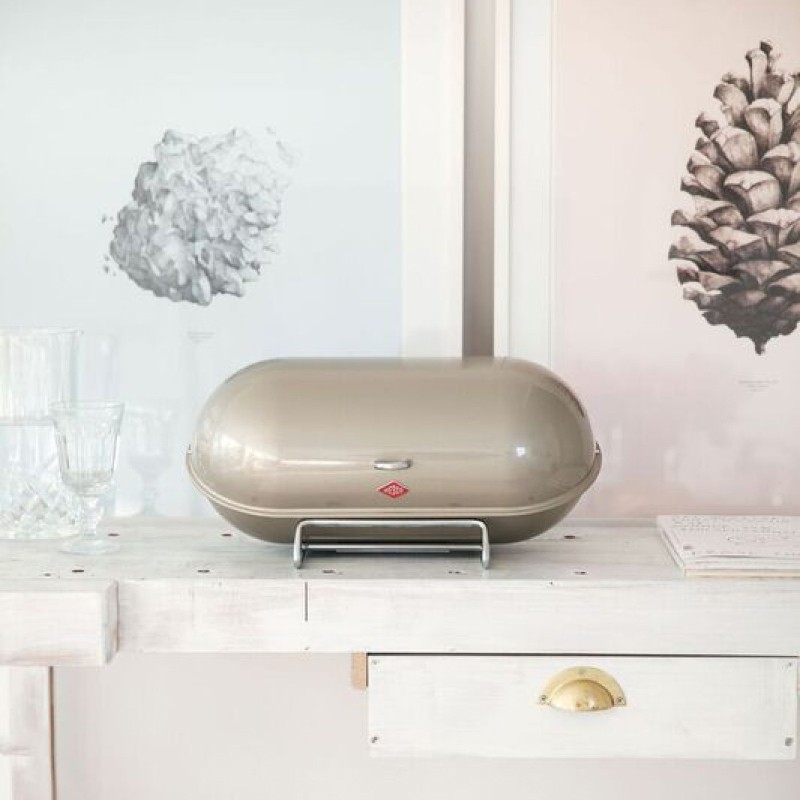 La boîte à pain Breadboy est composée de deux demi-coquilles, dont la partie supérieure bascule en arrière lors de l’ouverture et dégage ainsi une ouverture généreuse.