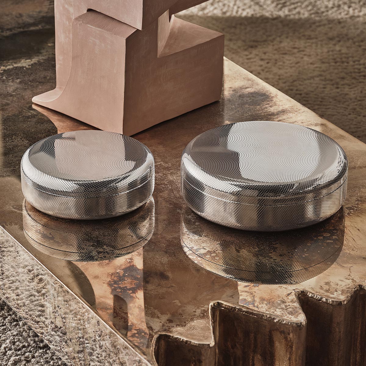 Les adeptes du design le plus minimaliste trouveront dans les objets de la série Extra Ordinary Texture des alliés fonctionnels, et les amateurs d’œuvres raffinées en métal pourront s’entourer d’objets à la finition précieuse.