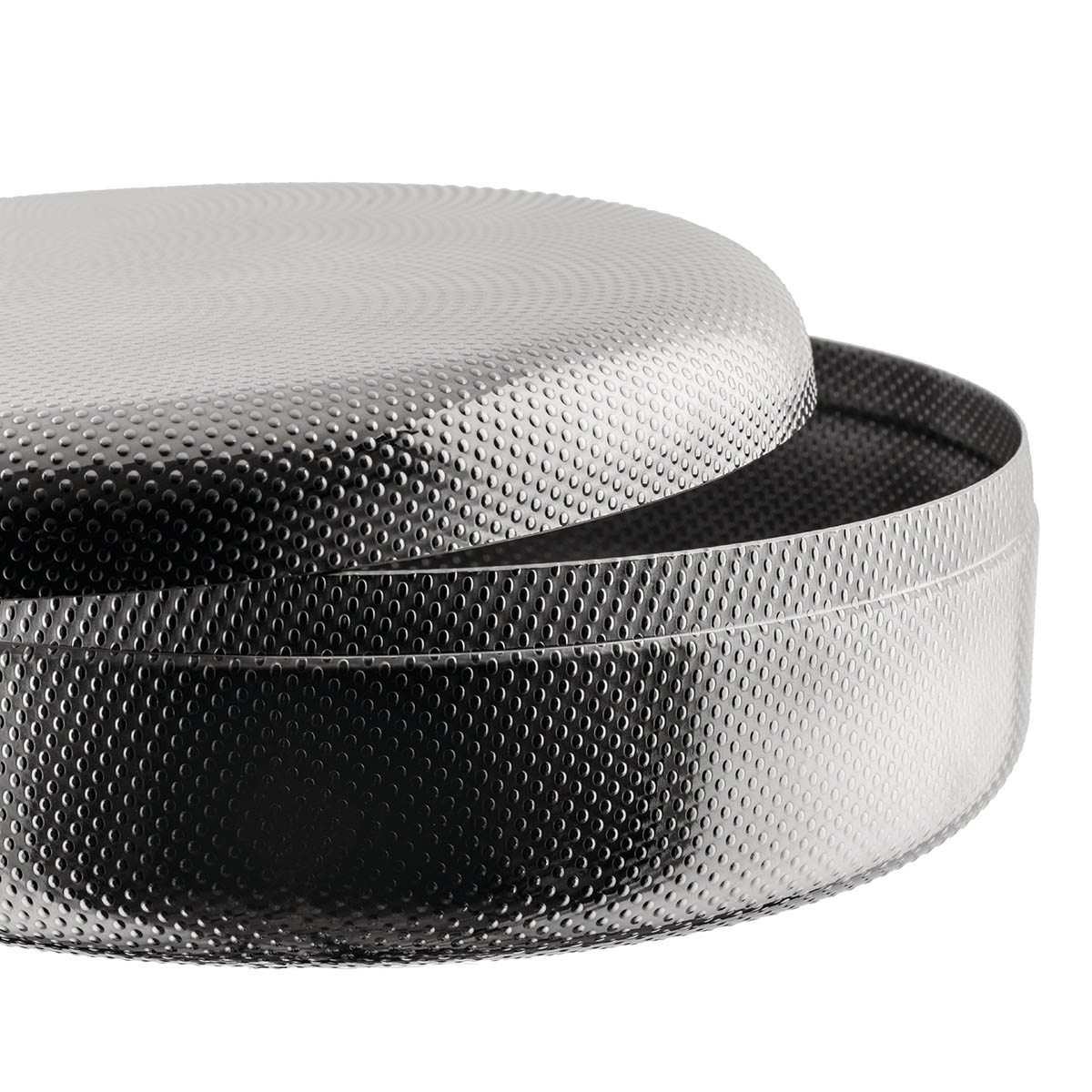 Boîte ronde ø23 cm avec couvercle Alessi avec décoration en relief de la famille Extra Ordinary Texture.