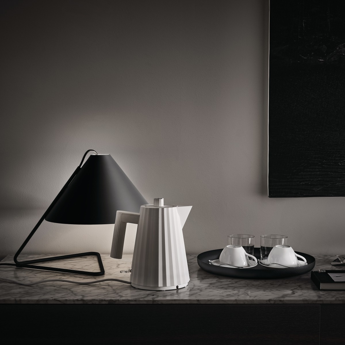 La bouilloire PLISSÉ est fabriquée en résine thermoplastique. En cas d’absence d’eau, l’appareil s’éteint. Le fond de la bouilloire est isolé: après ébullition, il est possible de poser PLISSÉ sans aucun risque sur toute surface.