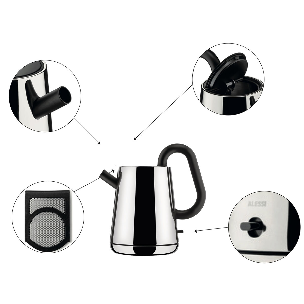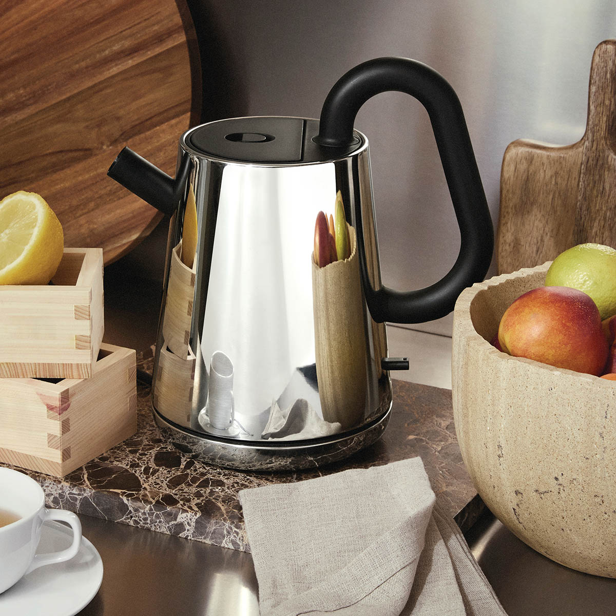 La bouilloire électrique Toru, conçue par le Studio Nendo, exprime l’habileté et le savoir-faire de l’entreprise dans le travail de l’acier. Toru signifie “à travers” en japonais. Dans l’imaginaire conceptuel de l’auteur, la poignée devient un bec, en traversant ainsi, avec une note enjouée, le volume en acier du corps. Une approche à la fois ironique et intellectuelle de la composition qui adoucit le métal sans altérer son aura raffinée.