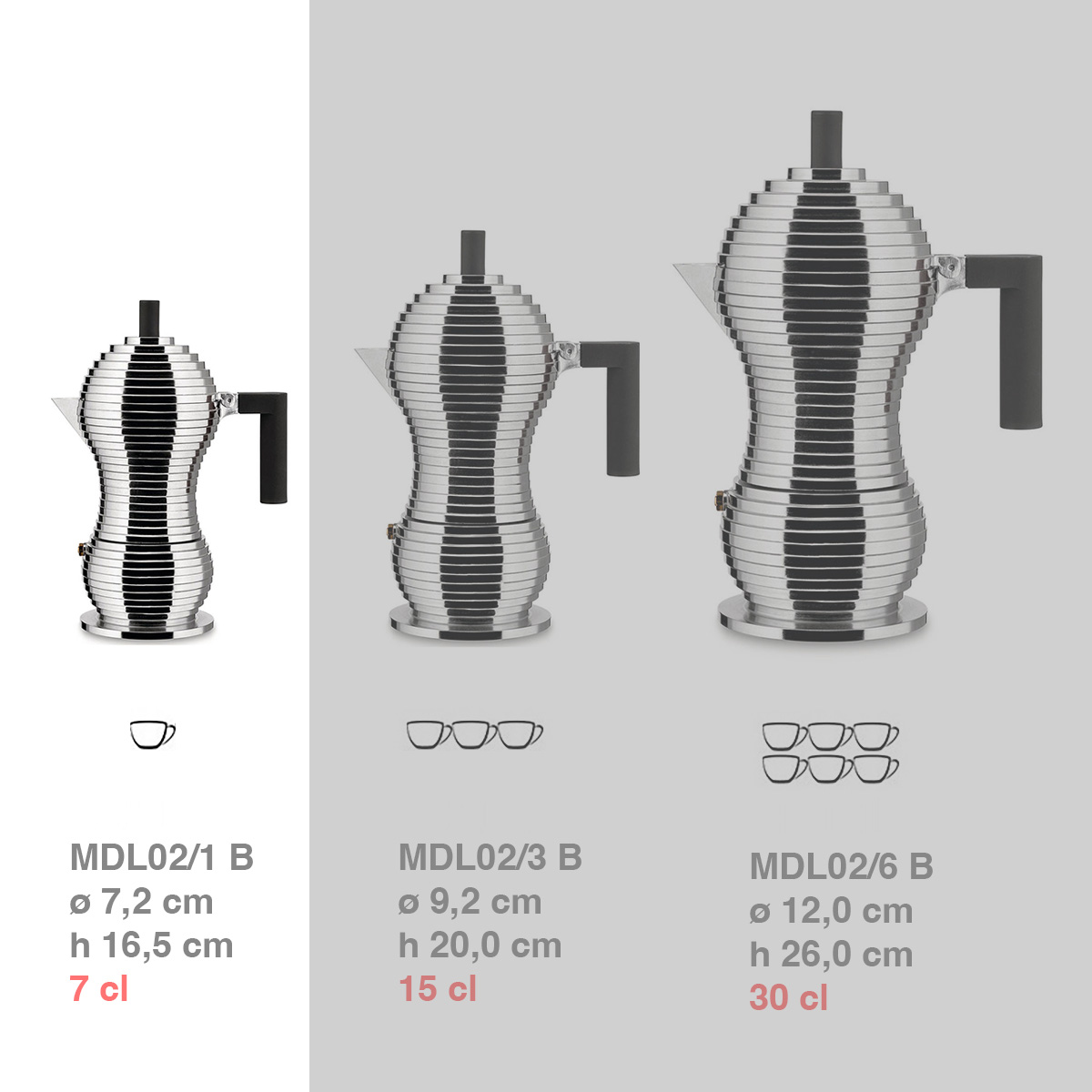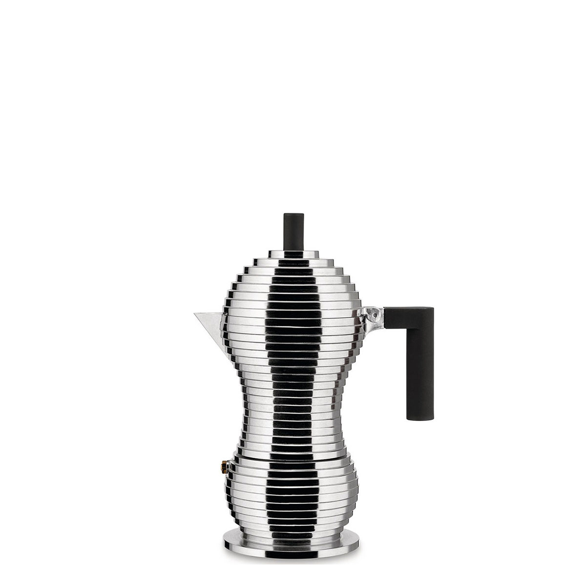Réalisée en fusion d’aluminium, Pulcina présente une petite innovation conceptuelle, fondamentale pourtant : sa forme qui lui permet de préparer un café pratiquement parfait.