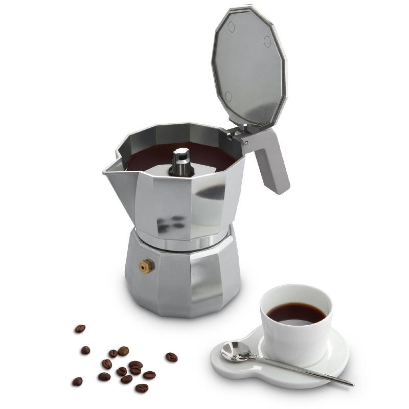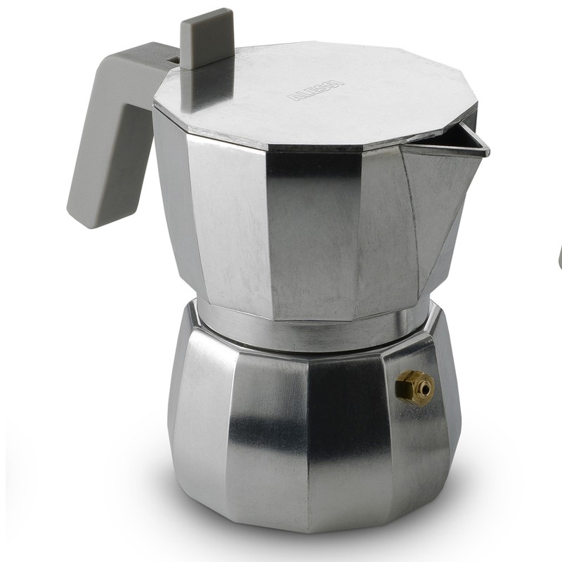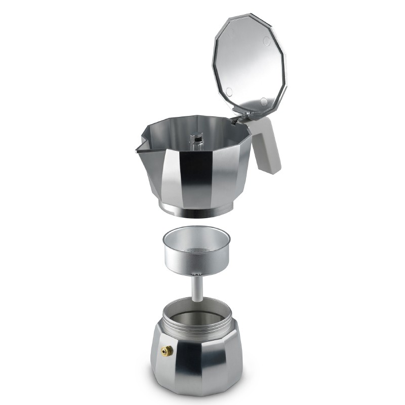 • Cafetière espresso en fonte d’aluminium, poignée et pommeau en PA, gris