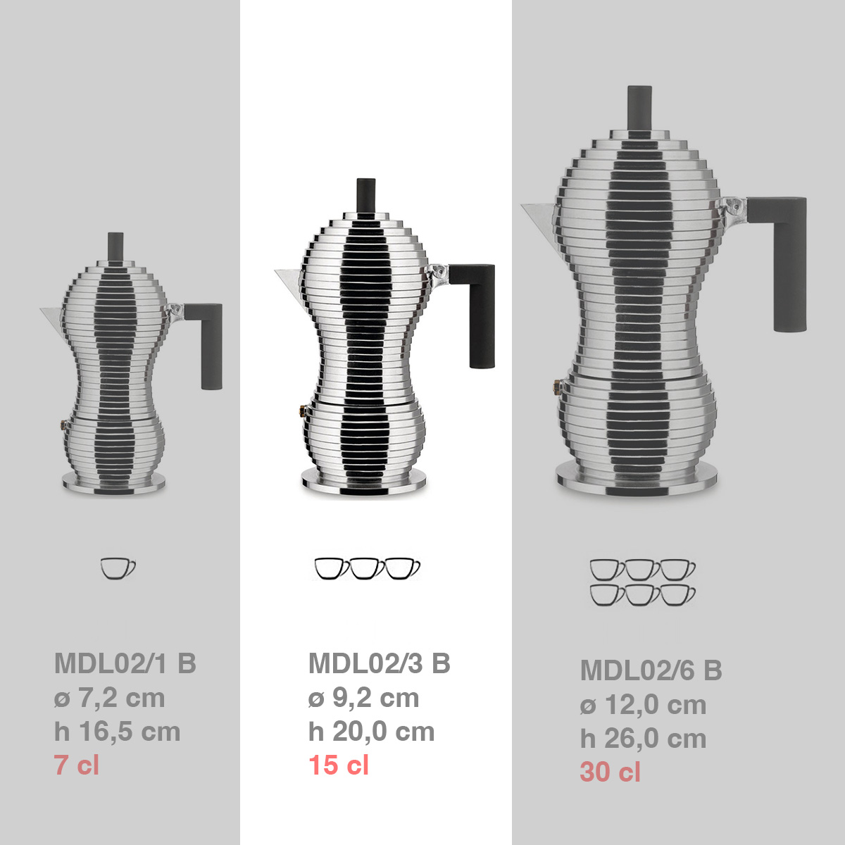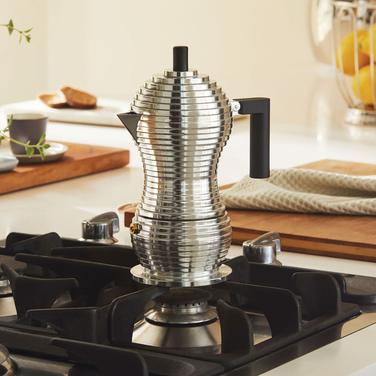 Cafetière espresso 3 tasses Pulcina alu-noir, design Michele De Lucchi. Pour un café parfait.