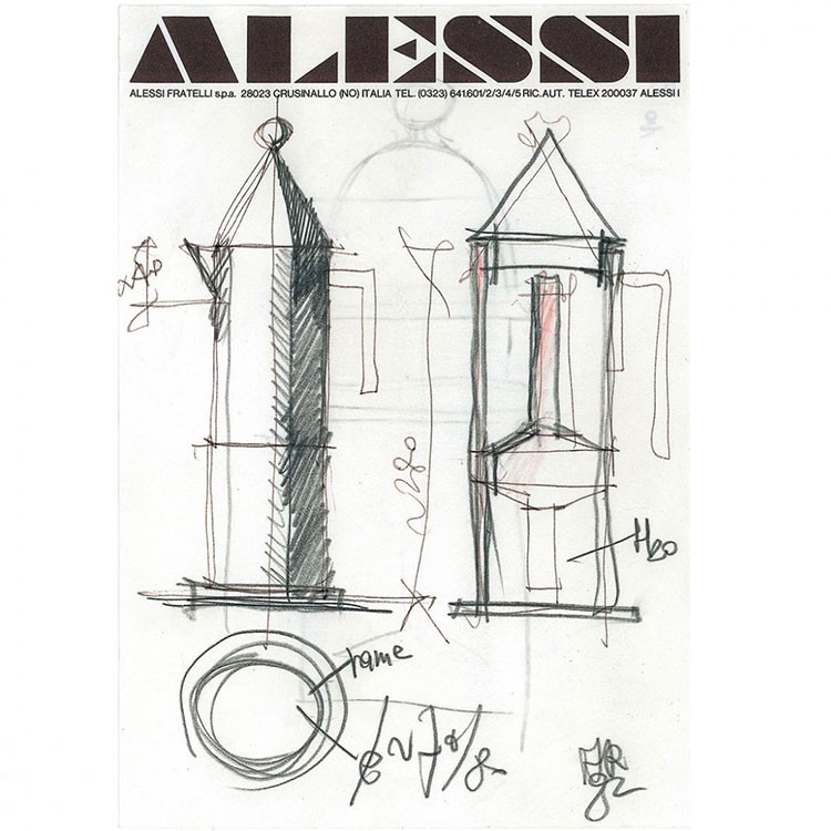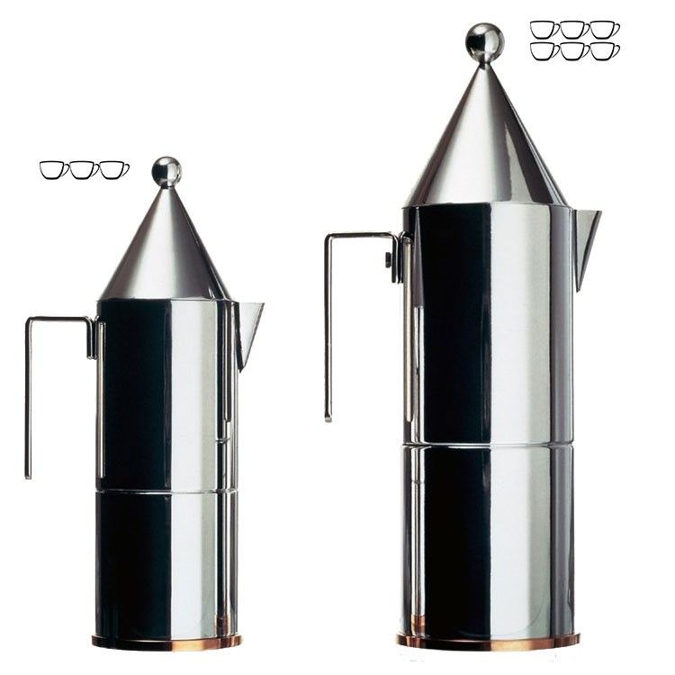 Premier projet réalisé par Aldo Rossi pour la grande série, cette cafetière à l’image fortement iconique devint rapidement le produit leader de la marque Officina Alessi qui venait de voir le jour, ainsi qu’un symbole du design des années 80.