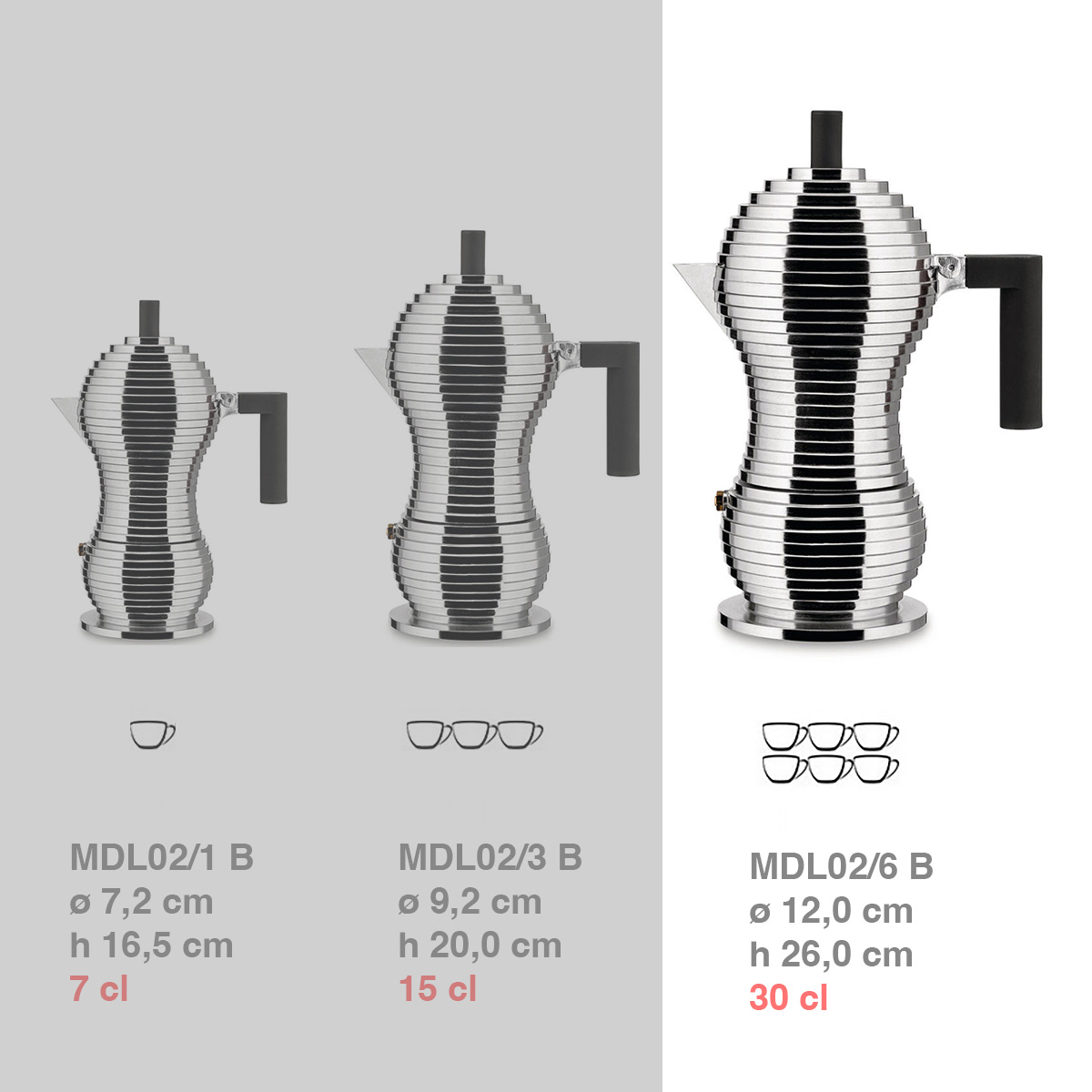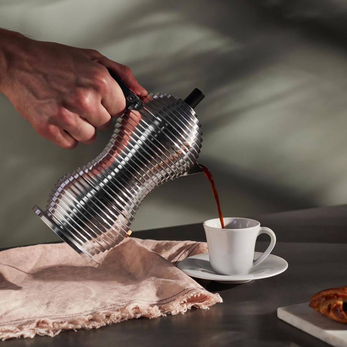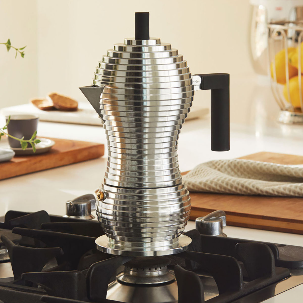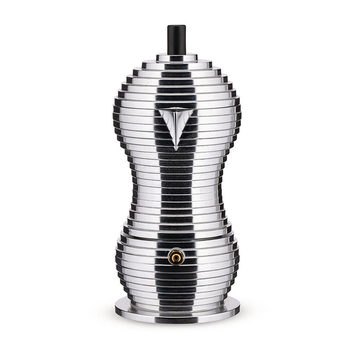 Réalisée en fusion d’aluminium, Pulcina présente une petite innovation conceptuelle, fondamentale pourtant : sa forme qui lui permet de préparer un café pratiquement parfait.