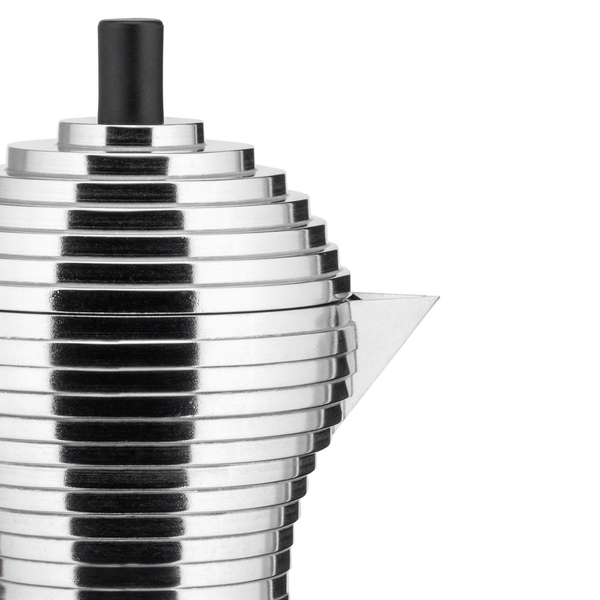 Le bec a été dessiné avec le même soin pour les aspects fonctionnels : quand l’on verse le café, sa forme particulière en V, qui rappelle le bec d’un poussin (d’où le nom de la cafetière), permet de retenir parfaitement la goutte.