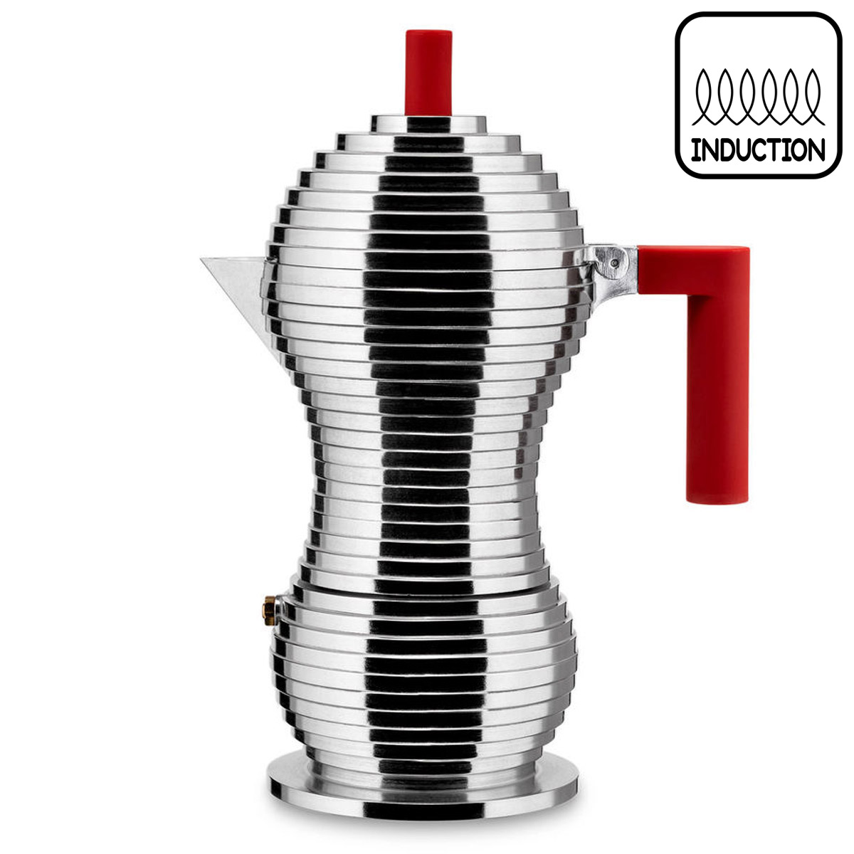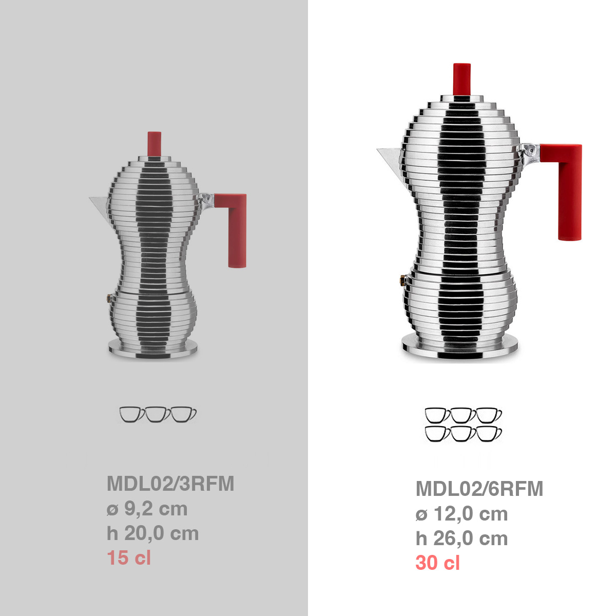 Réalisée en fusion d’aluminium, Pulcina présente une petite innovation conceptuelle, fondamentale pourtant : sa forme qui lui permet de préparer un café pratiquement parfait.