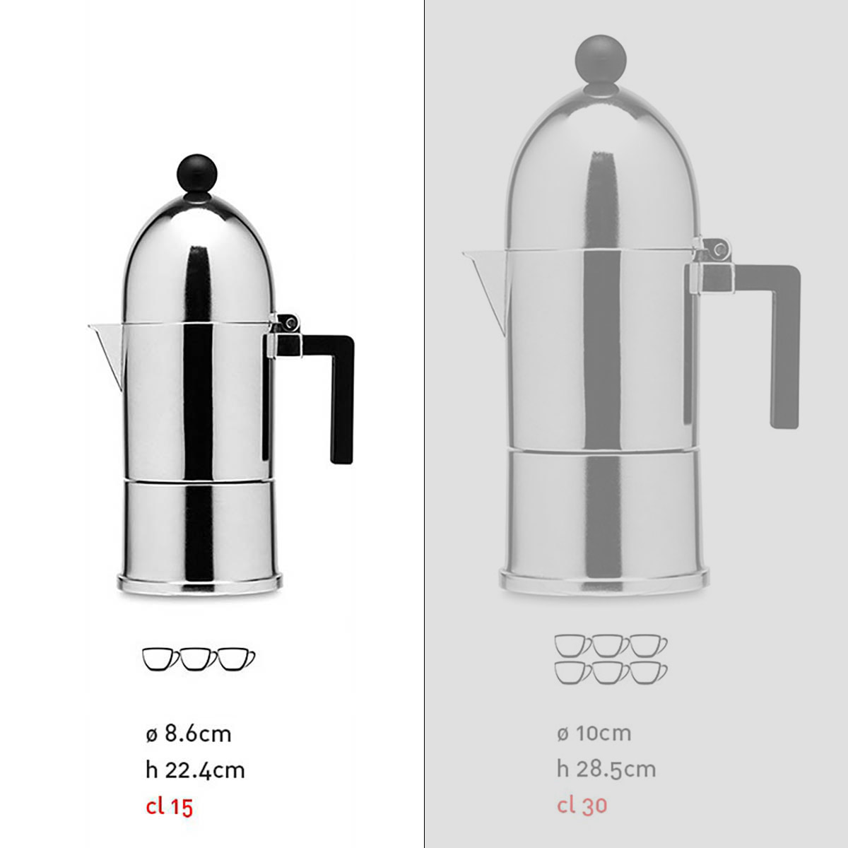 Cafetière espresso La Cupola Alessi 3 tasses alu-noir – design Aldo Rossi 1988.