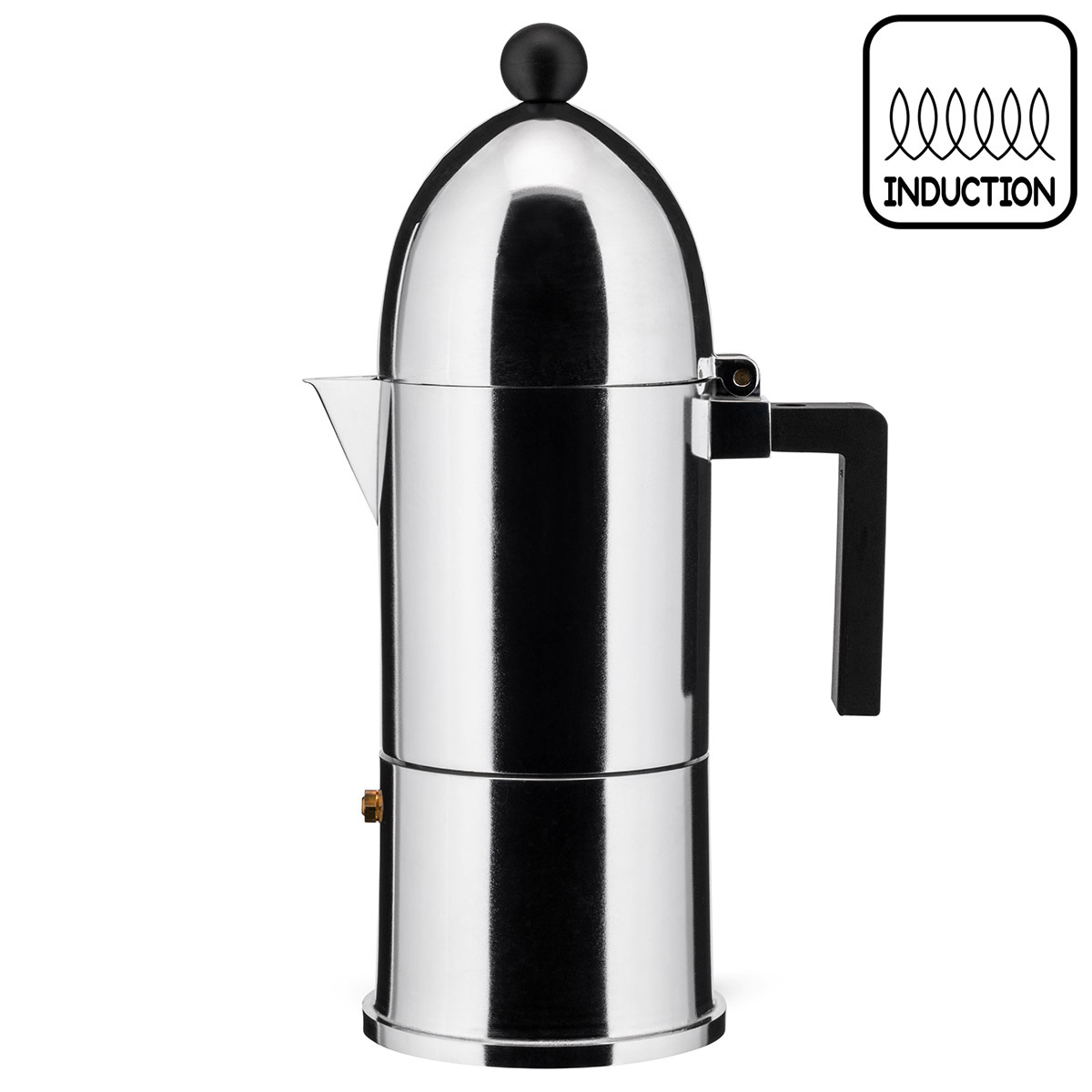 Le corps est en fonte d’aluminium, un excellent matériau conducteur de chaleur qui confère à l’espresso un goût incomparable, plein et rond. Le dessous de la cafetière est en acier magnétique, qui convient également aux plaques à induction. La poignée et le pommeau sont en résine thermoplastique.