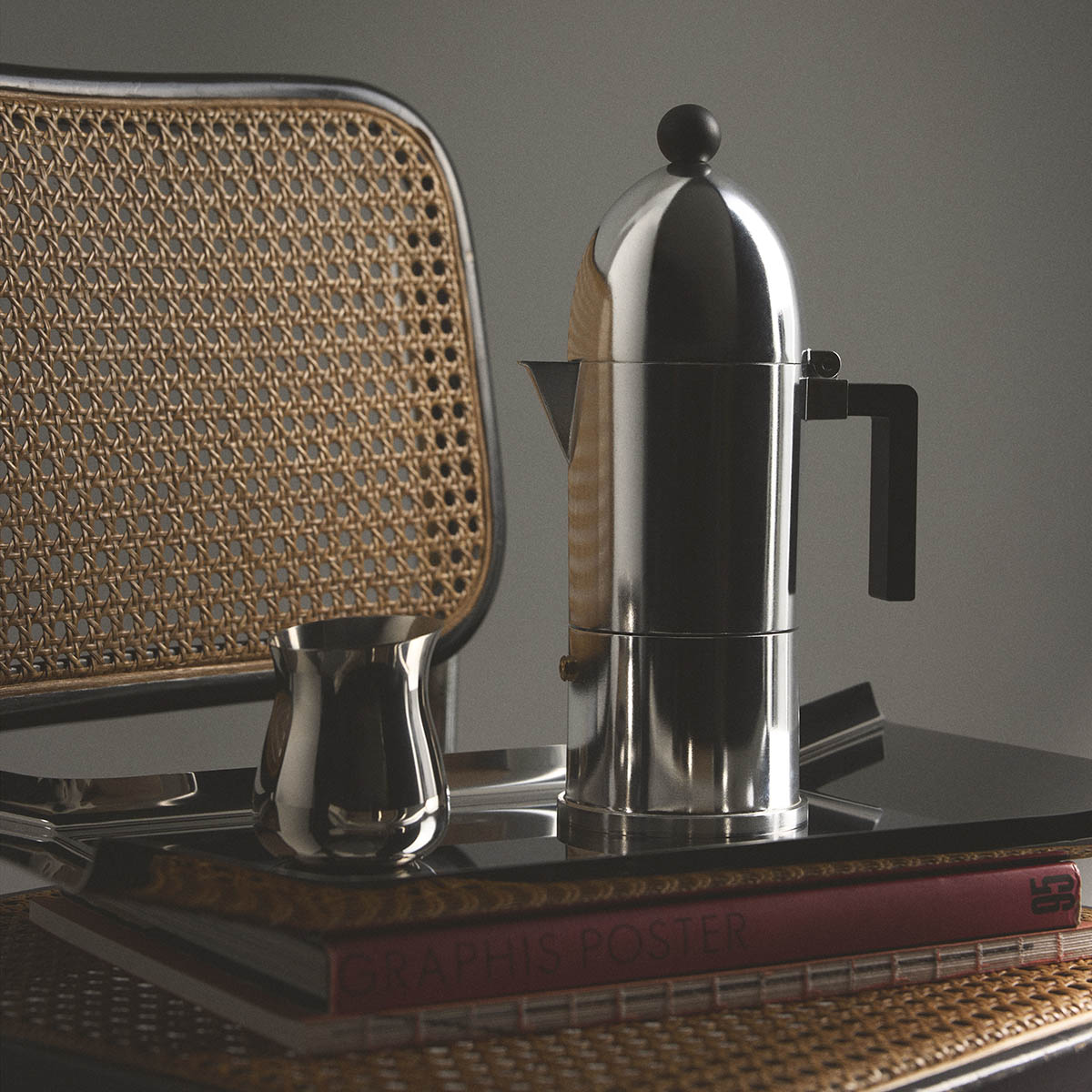 Cafetière espresso La Cupola Alessi 6 tasses alu-noir – design Aldo Rossi 1988.