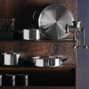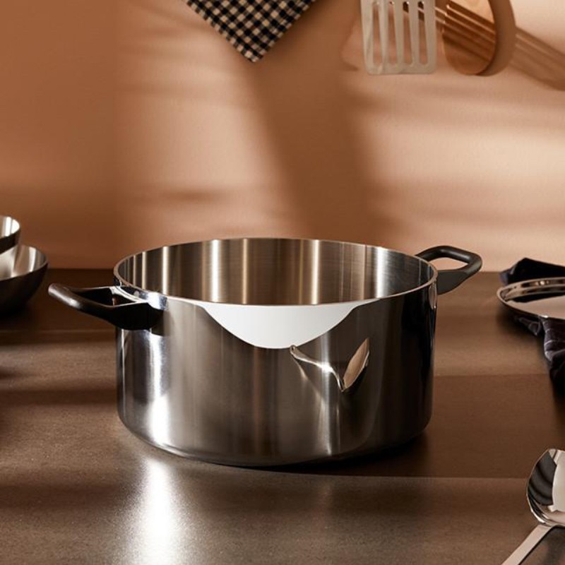 Caractérisée par sa forme essentielle, la casserole de la série La Cintura di Orione se distingue par la qualité de ses matériaux, ses hautes performances de cuisson et sa longévité. Réalisée en acier inox 18/10 multicouche, cette casserole est parfaite pour tous les types de cuisson, même pour l’induction, et assure une distribution correcte de la chaleur sur toute la surface du récipient. Idéale pour braiser, mijoter, rôtir et préparer de savoureux risottos.