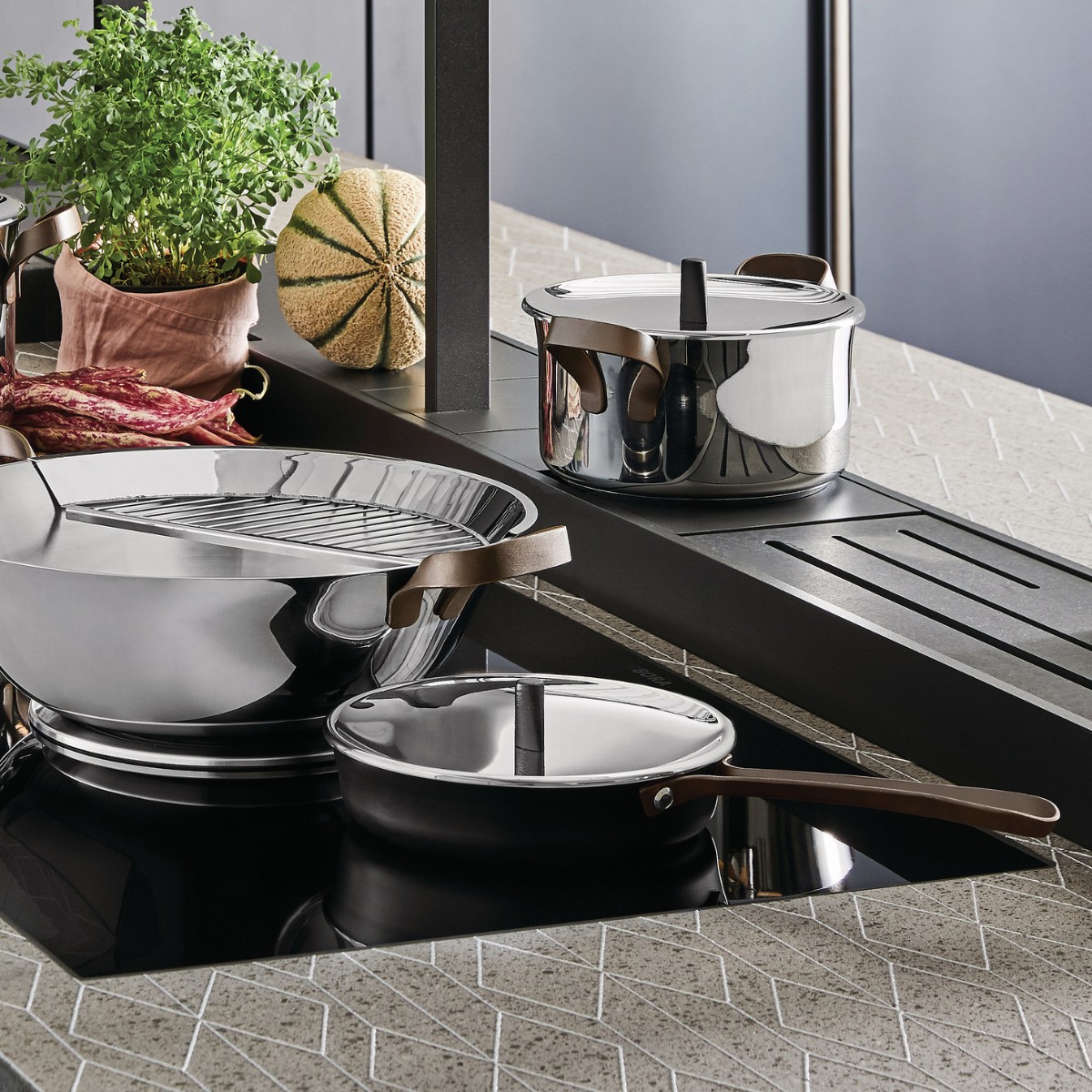 • Matières: Poêle en aluminium avec revêtement anti-adhérent, noir. Manche en acier inoxydable 18/10 avec revêtement en PVD, marron. Fond en acier magnétique compatible avec la cuisson par induction