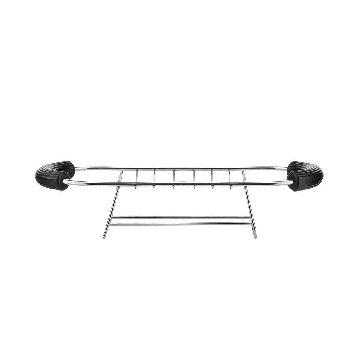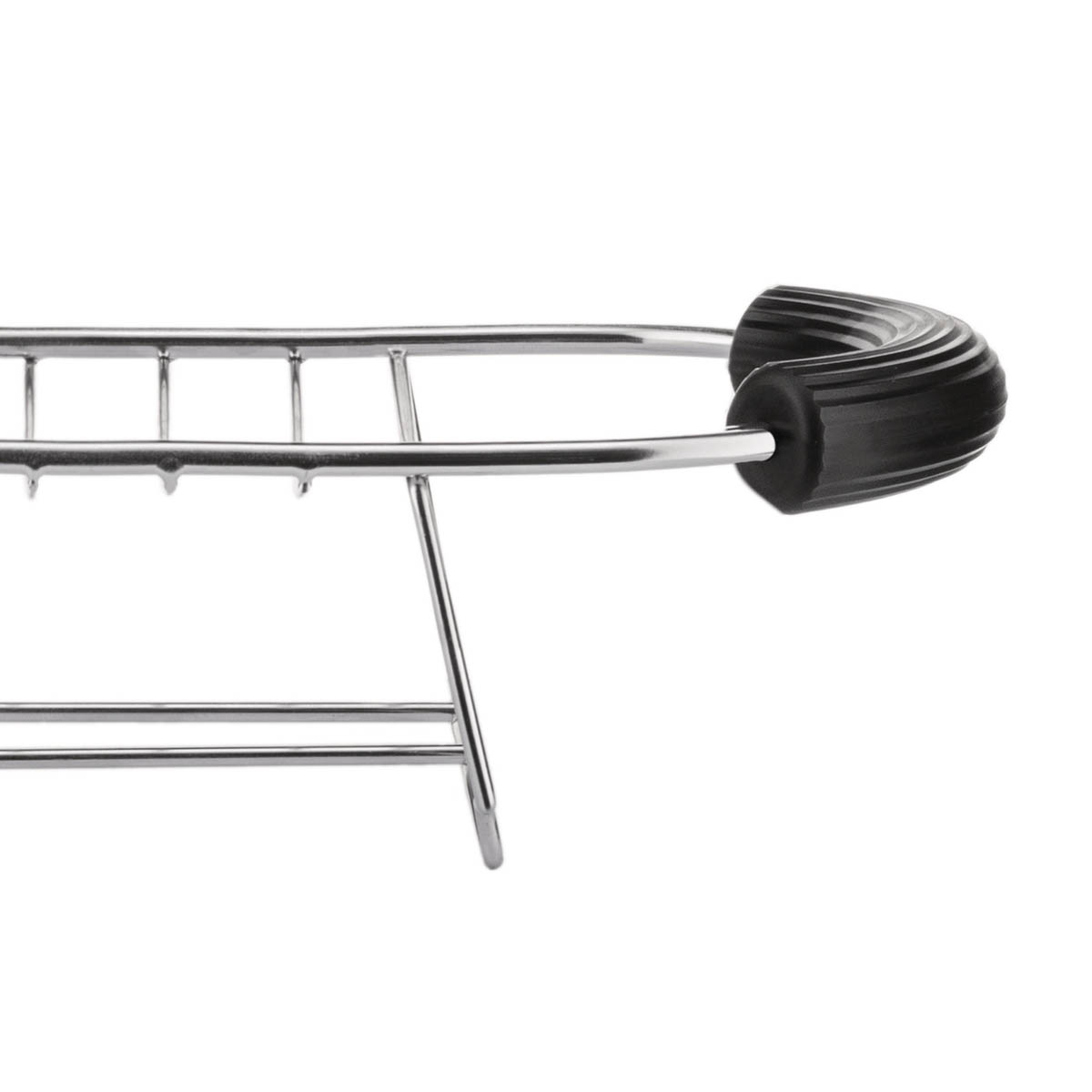 La grille de réchauffage peut être utilisée pour maintenir la température des tranches de pain déjà grillées, ou pour réchauffer des croissants, des pizzas ou d’autres produits de boulangerie. • Matière : acier inoxydable, poignées en résine thermoplastique • Dimensions : longueur 26 cm, largeur 10.5 cm, hauteur 5,5 cm • Design: Michele de Lucchi
