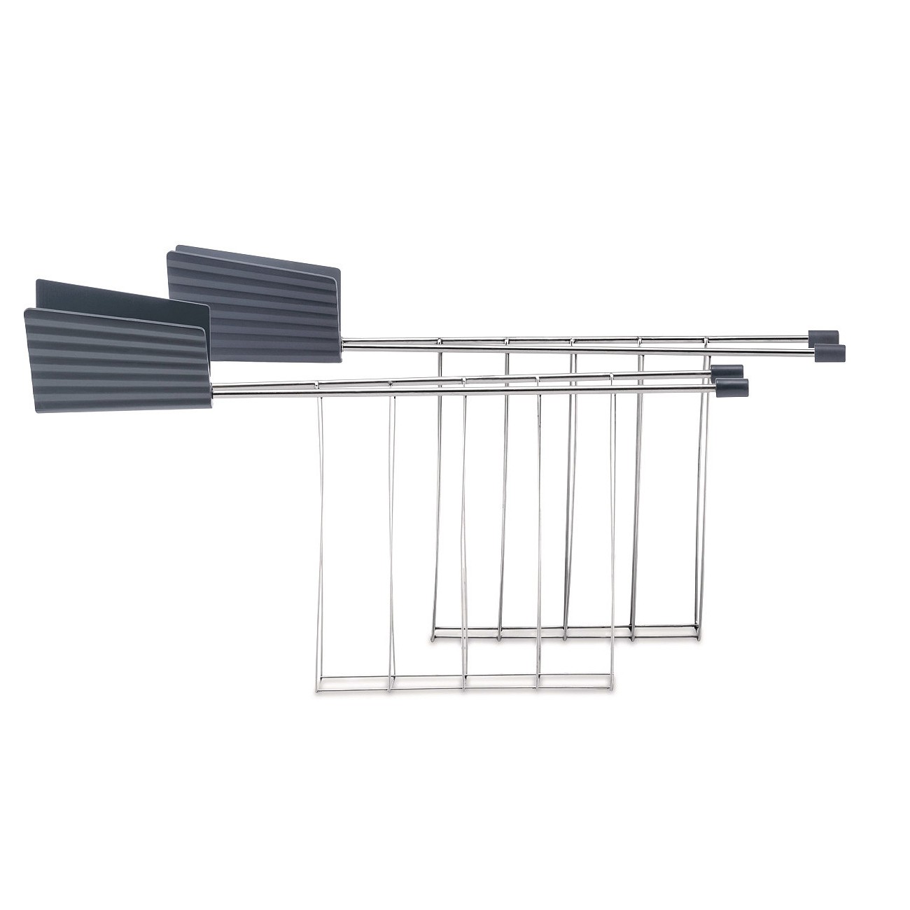 Les deux pinces sont en acier inoxydable, avec une poignée en résine thermoplastique de la même couleur que le corps du grille-pain. Les pinces ont été conçues pour insérer et retirer facilement le pain.