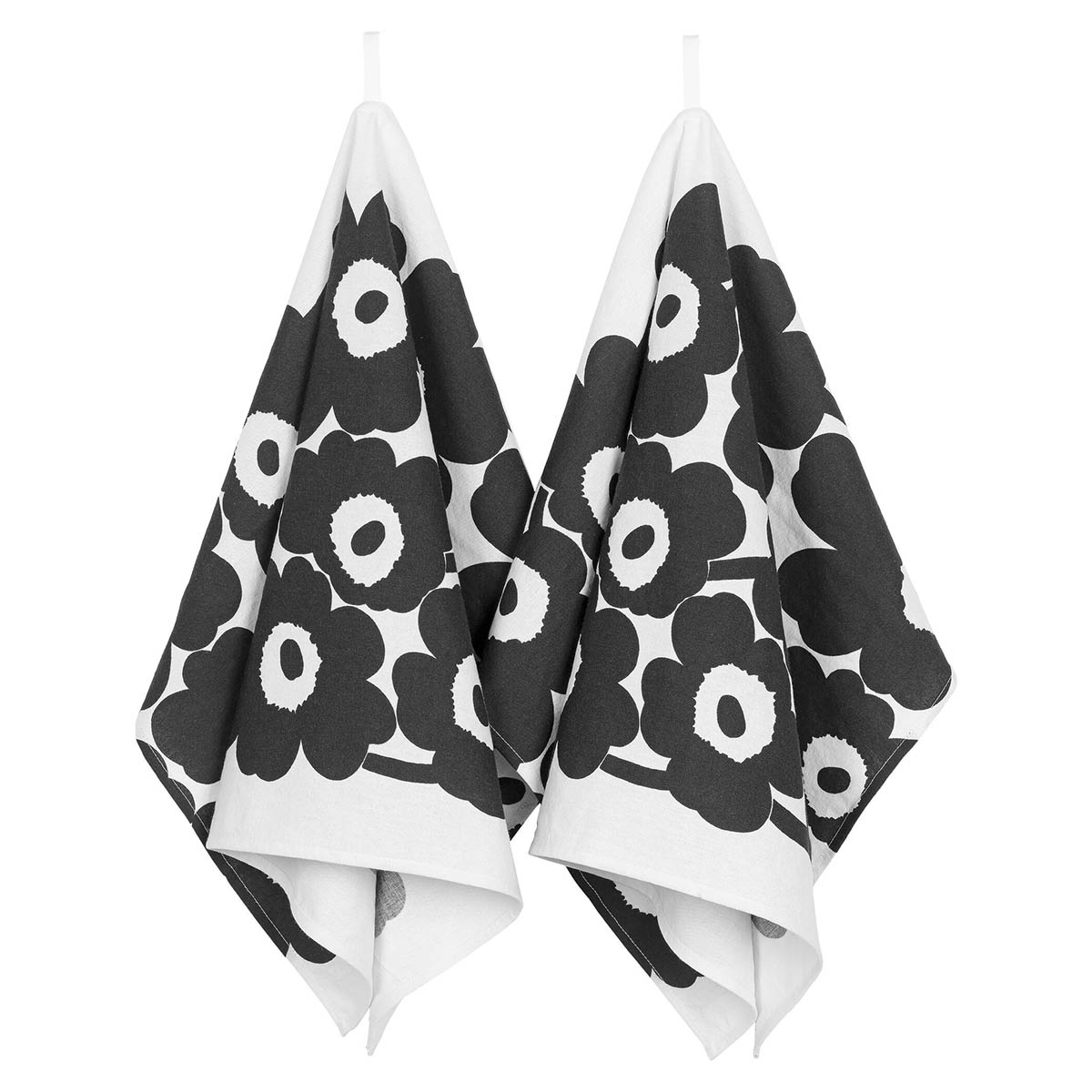 Linge de cuisine Marimekko Unikko noir-blanc – pack de 2 pièces de Marimekko.