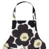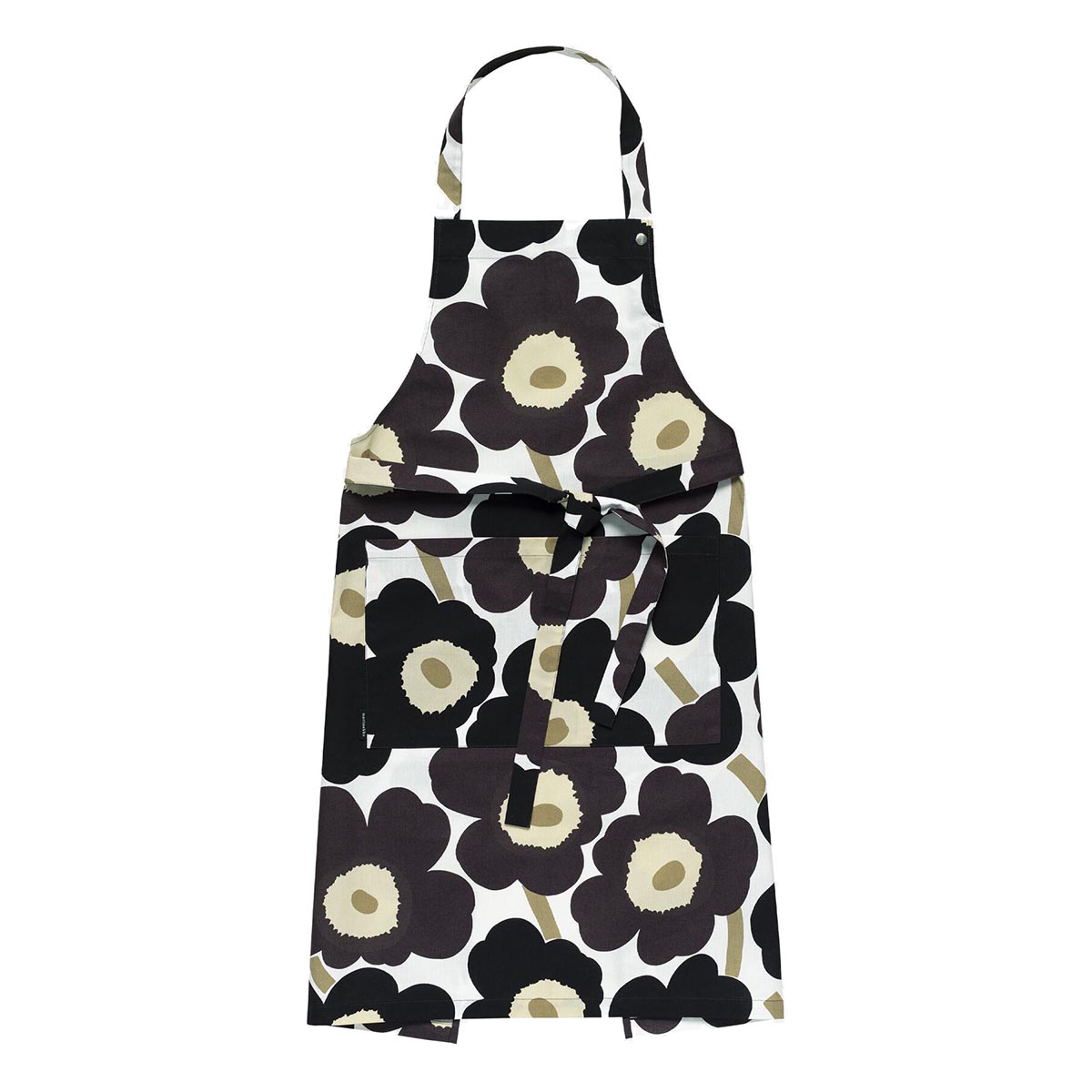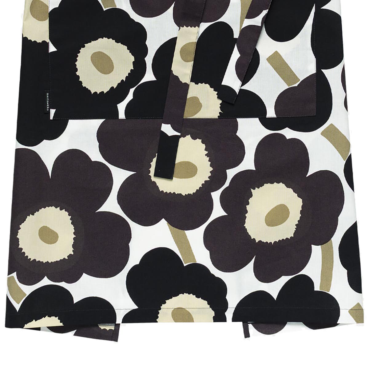 Ce tablier en coton possède une poche avant, une sangle réglable au niveau du cou et des bandes à la taille nouables dans le dos. Il arbore le motif Pieni Unikko, imprimé à Helsinki.