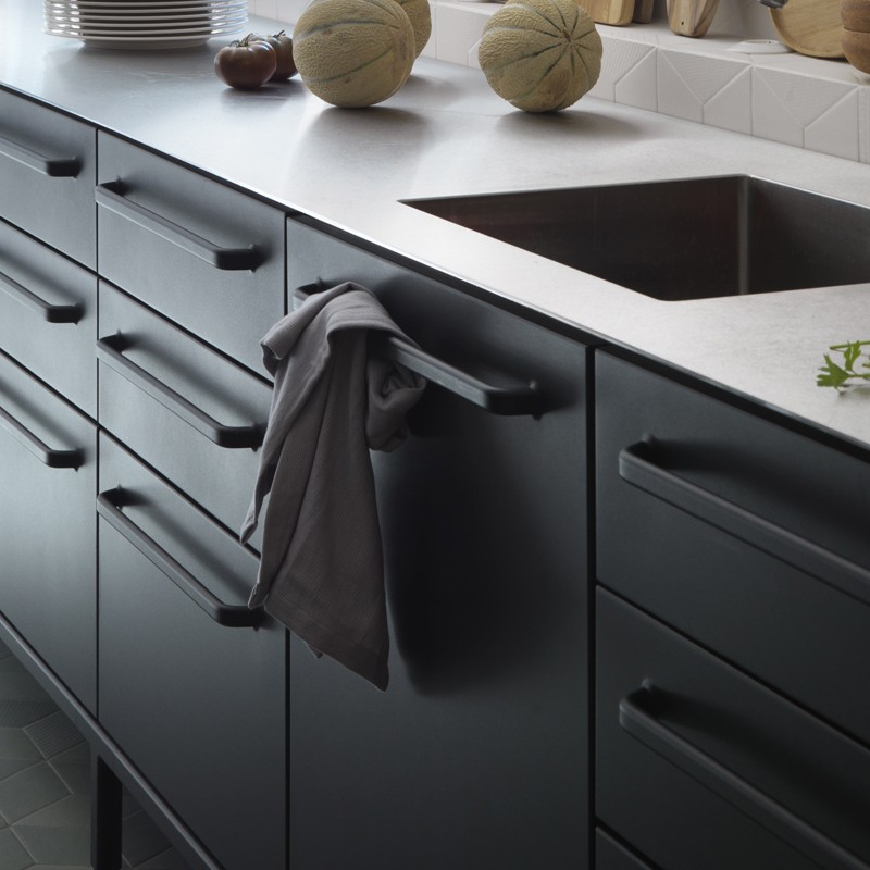 Ces linges de cuisine Vipp 121 en set de 2 pièces sont fabriqués en coton biologique noir.