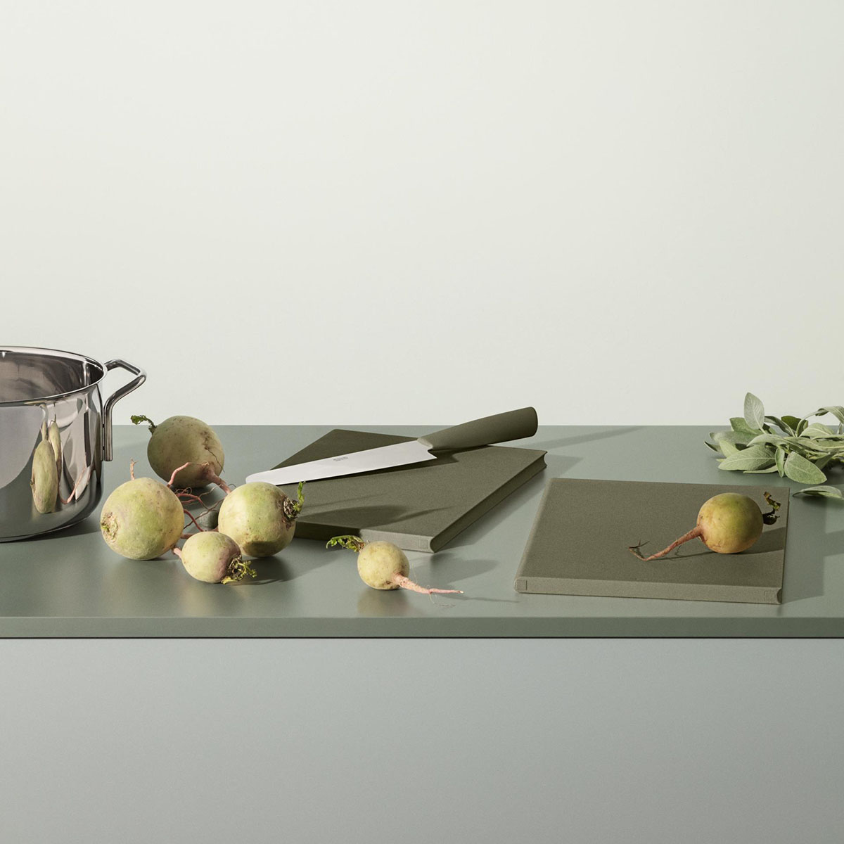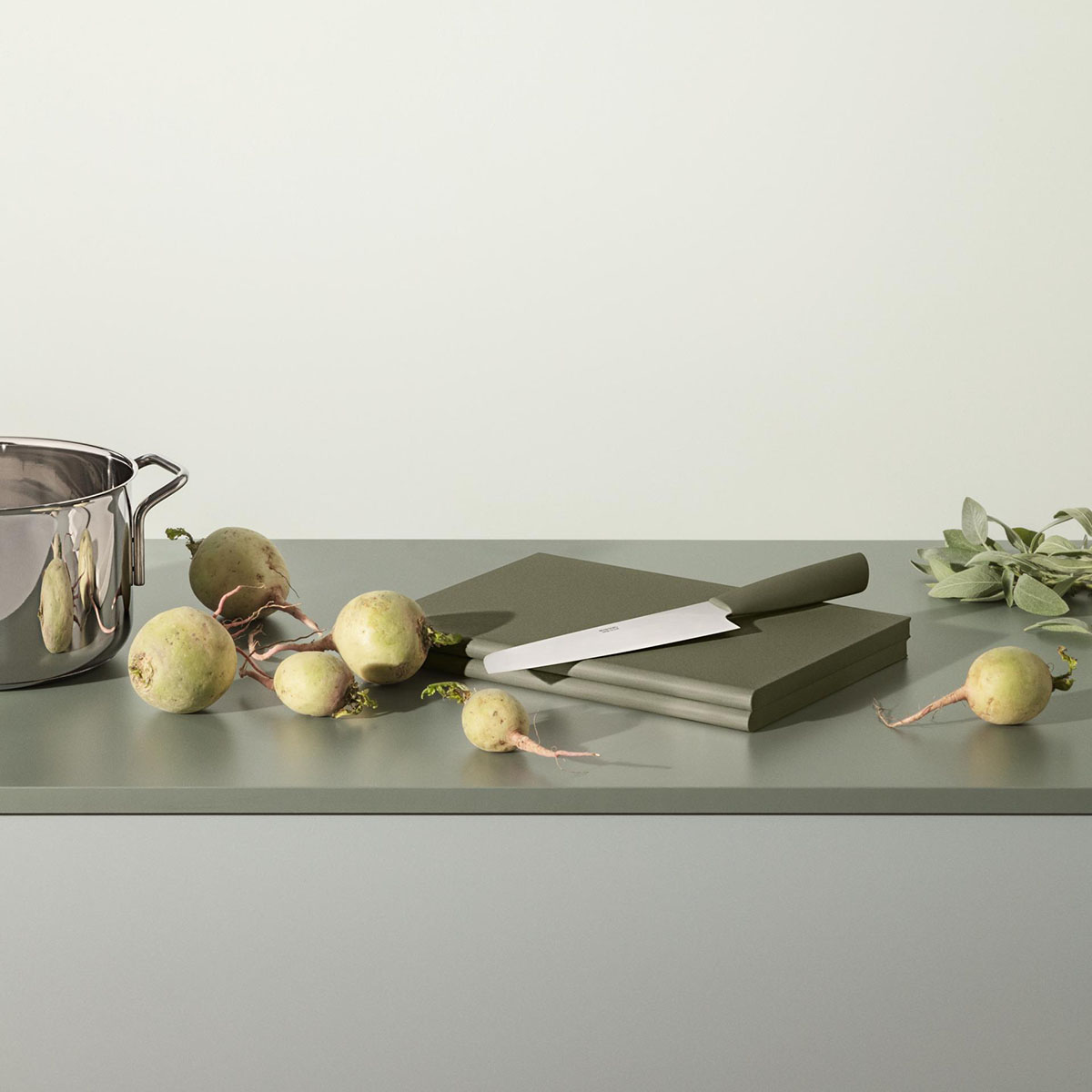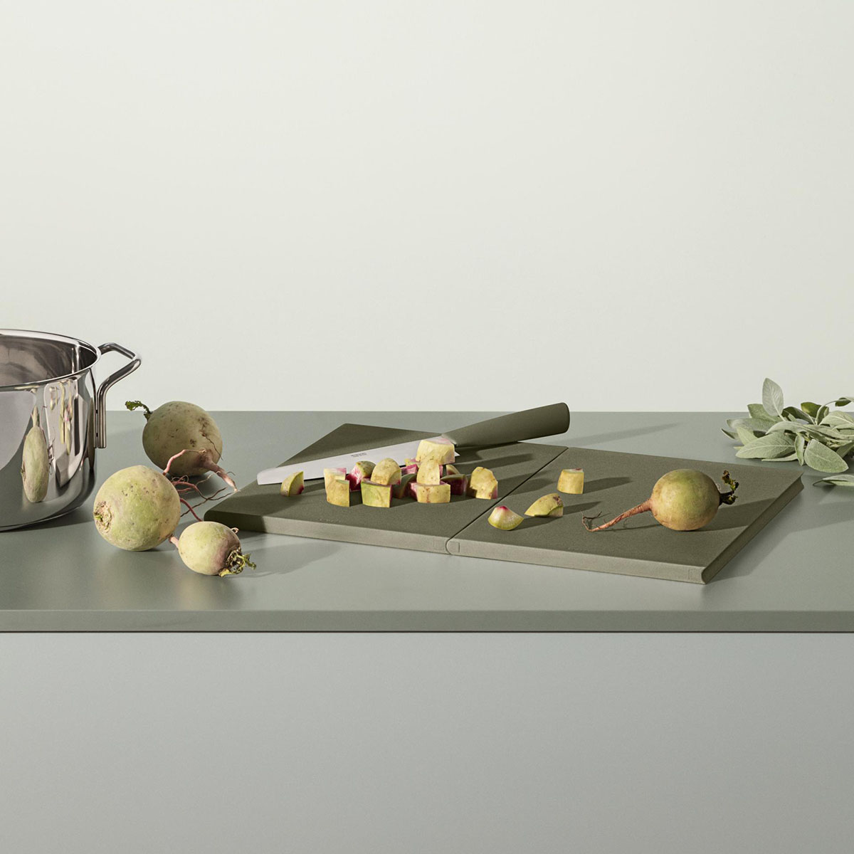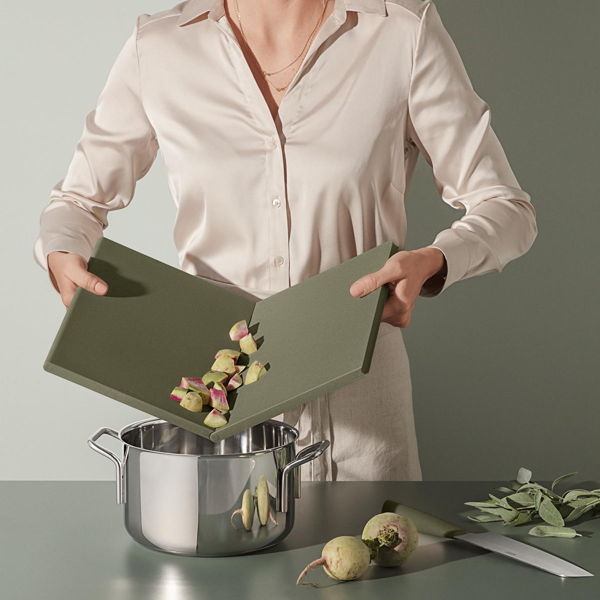 DoubleUp d’eva solo est une planche à découper flexible avec des aimants puissants qui permettent de combiner les planches en une ou deux, selon les besoins.