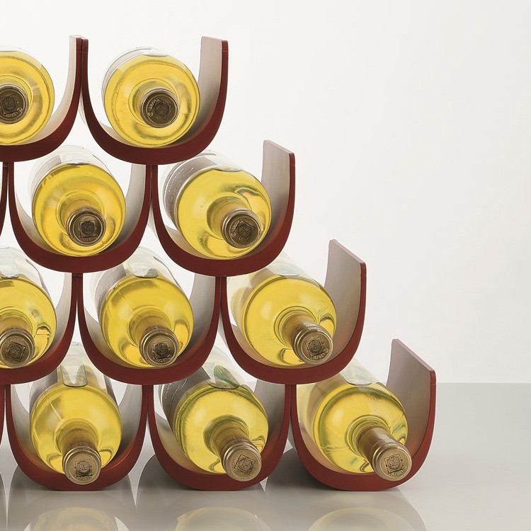Le Porte-bouteilles déssiné par Giulio Iacchetti a été conçu comme un accessoire fonctionnel pouvant être en même temps un élément de décoration posé sur le comptoir de la cuisine ou par terre.