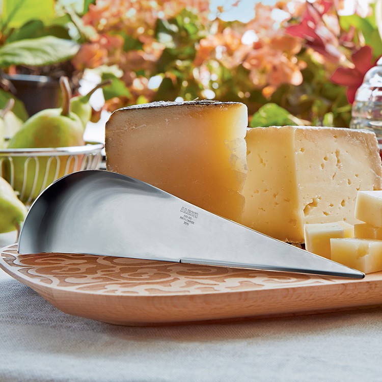 Les aspects formels sont en équilibre parfait avec les prestations fonctionnelles auxquelles le couteau est destiné. Le type d’acier choisi et son épaisseur particulière donnent à cet objet une bonne résistance, et le rendent adapté à tous les types de fromages.