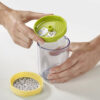 • Le design convivial et auto-alignant maintient le morceau de fruit ou légume droit lorsque vous tournez la poignée Softgrip