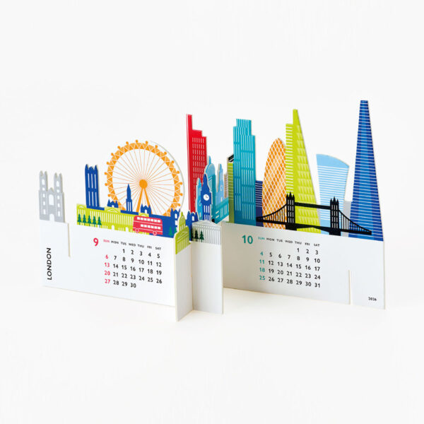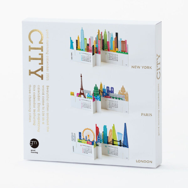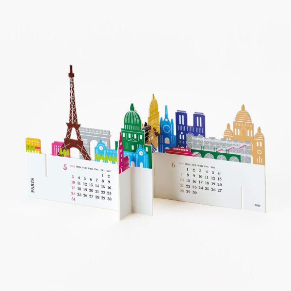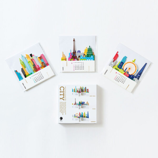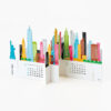 CITY est un calendrier basé sur le motif des villes du monde entier. Assemblez les pièces pour créer des paysages urbains colorés remplis de monuments célèbres. Le calendrier 2026 présente New York, Paris et Londres.