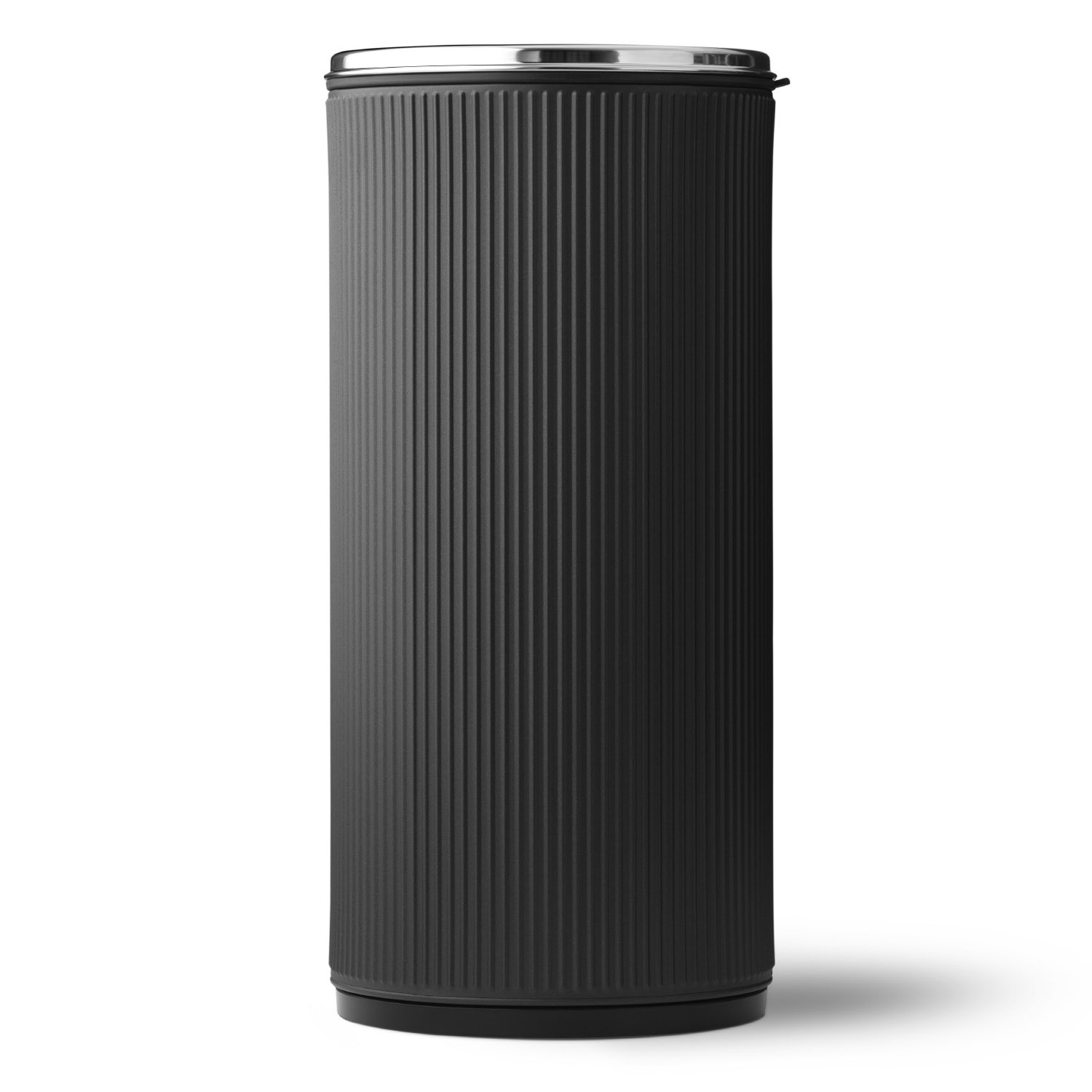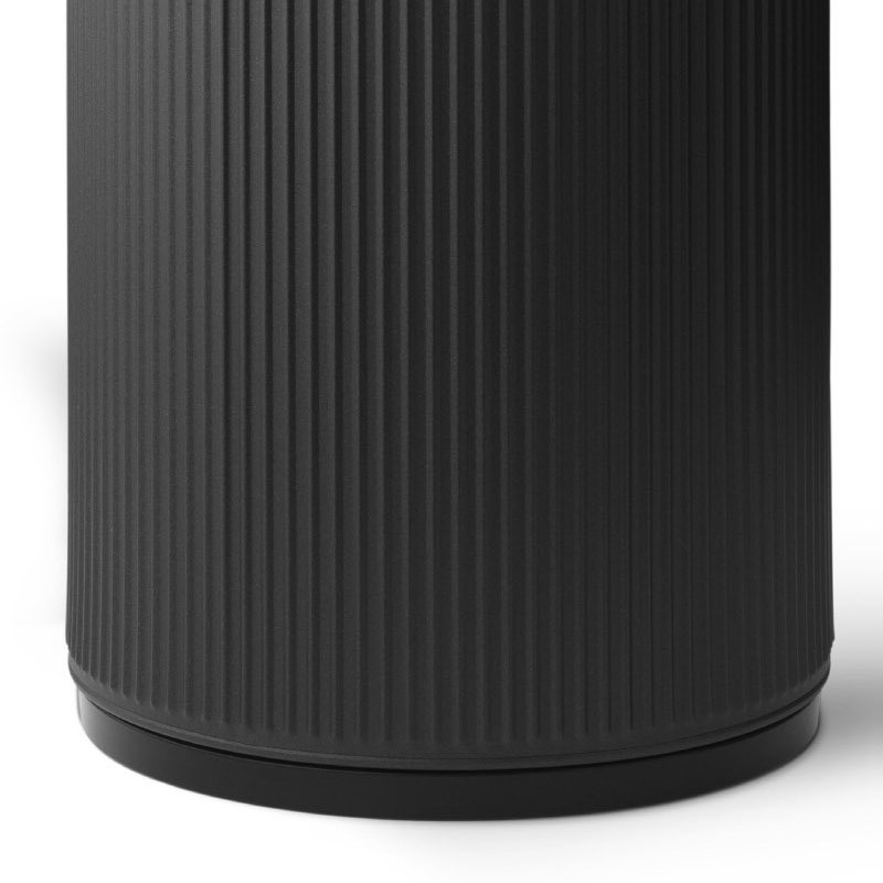 L’anneau incliné vers l’intérieur canalise les déchets vers le bas dans une poubelle intérieure cachée. La surface rainurée de la coque extérieure en acier assure une prise ferme lors de la vidange de la poubelle.