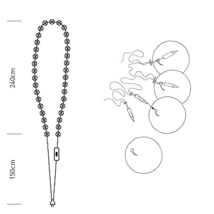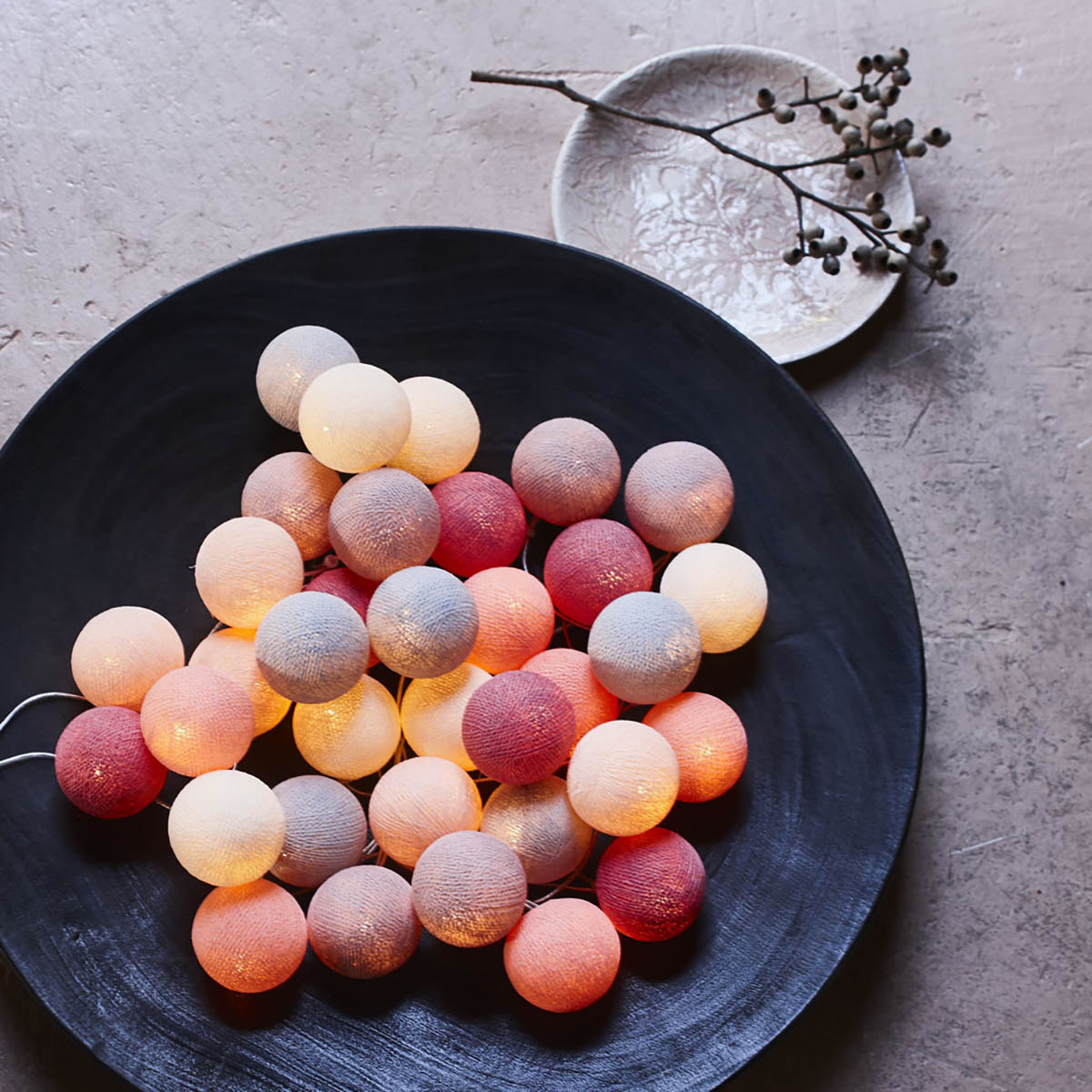 Les 35 boules faites à la main sont livrées en vrac et peuvent être placées selon votre désir sur la guirlande lumineuse.