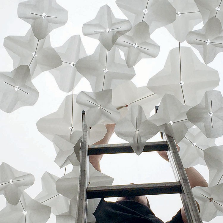 Le pliage basé sur des formes géométriques symbolise des formes universelles que sont les fleurs et les étoiles. Par le jeu de l’ombre et de la lumière inspiré par le mouvement naturel, Minoshi Garden™ devient un moment de vie à part entière.