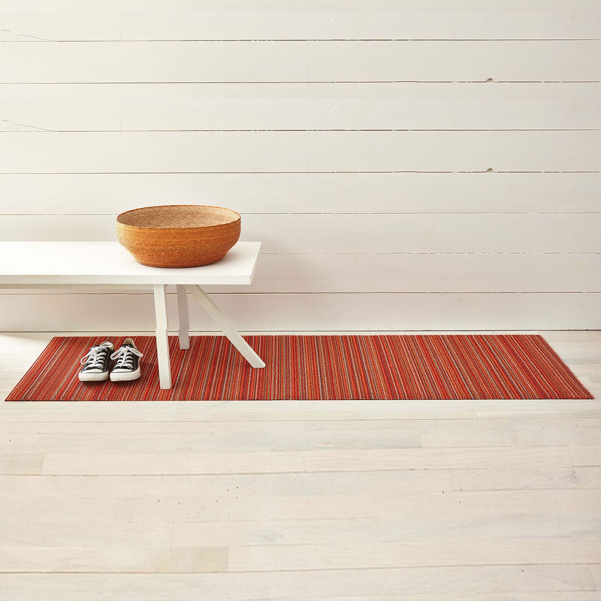 Les tapis de Chilewich conviennent pour une utilisation intérieure et extérieure. Ils peuvent être utilisés dans la zone d’entrée, dans la salle de bain, sur la terrasse ou à côté de la piscine.
