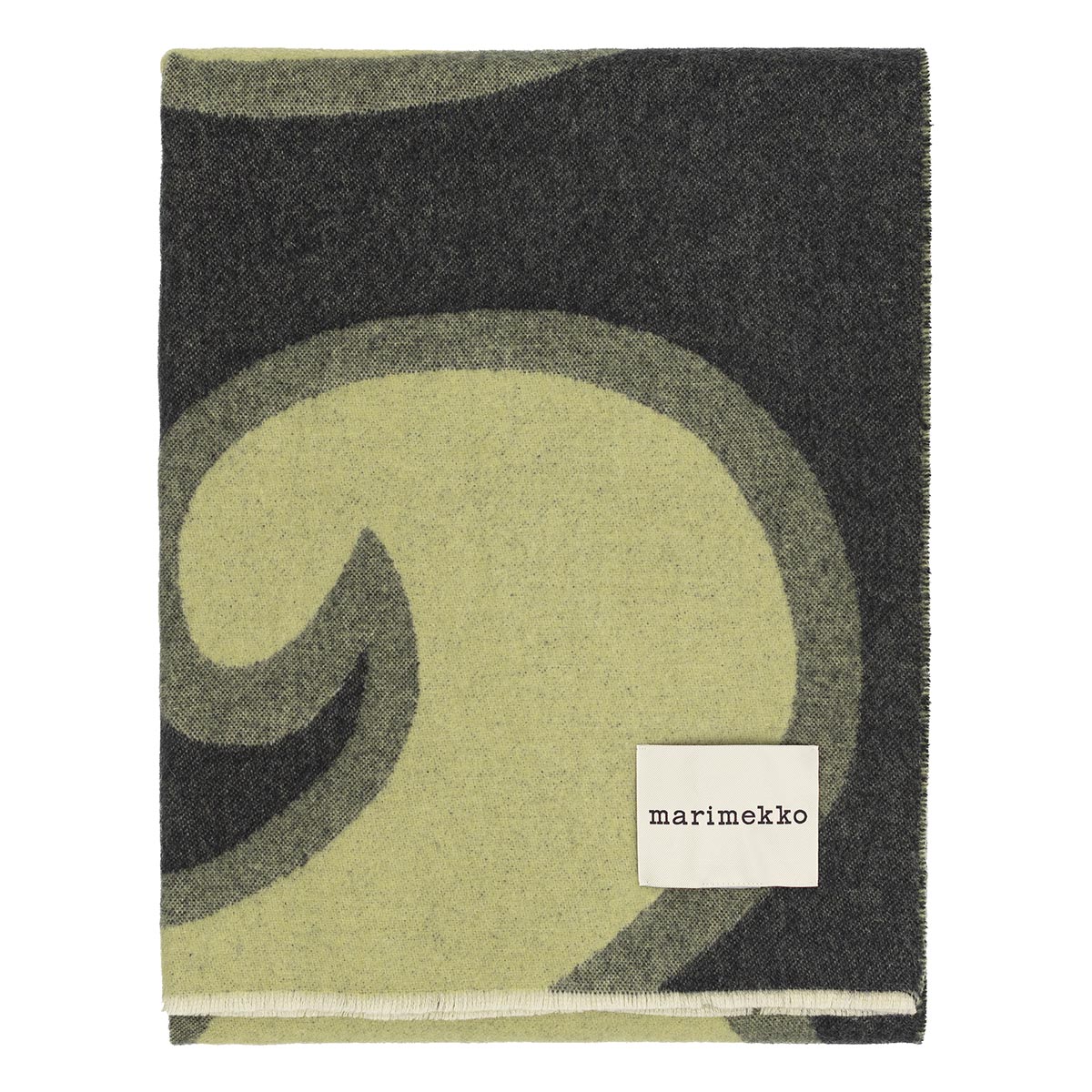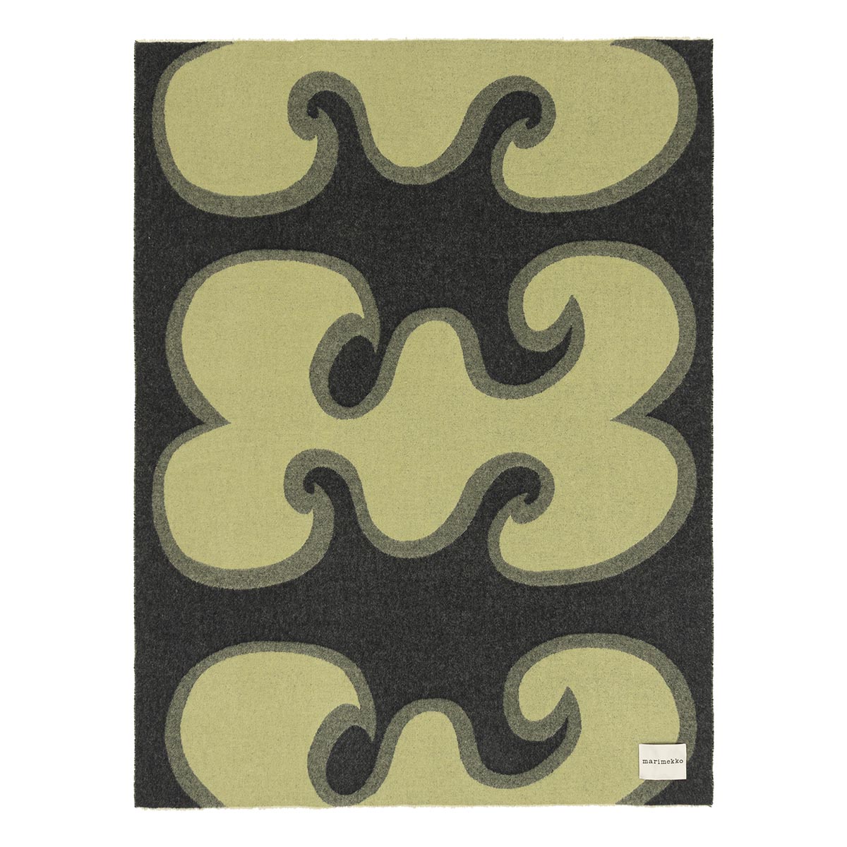 Cette couverture en maille jacquard arbore le motif Jokeri et l’étiquette Marimekko sur le bord inférieur. Ce produit est confectionné dans un mélange de laine composé de 44 % de laine recyclée, 37 % de laine vierge et 16 % de polyamide recyclé.