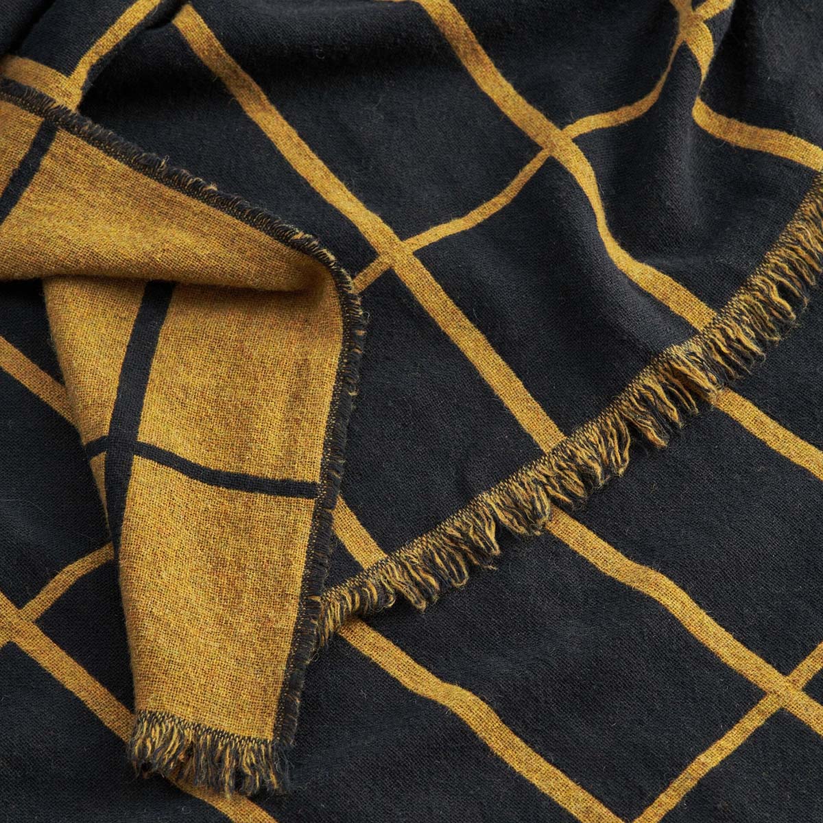 Ce plaid est fabriqué principalement avec du coton et de la laine. Cette chaude couverture est munie de franges à ses extrémités.