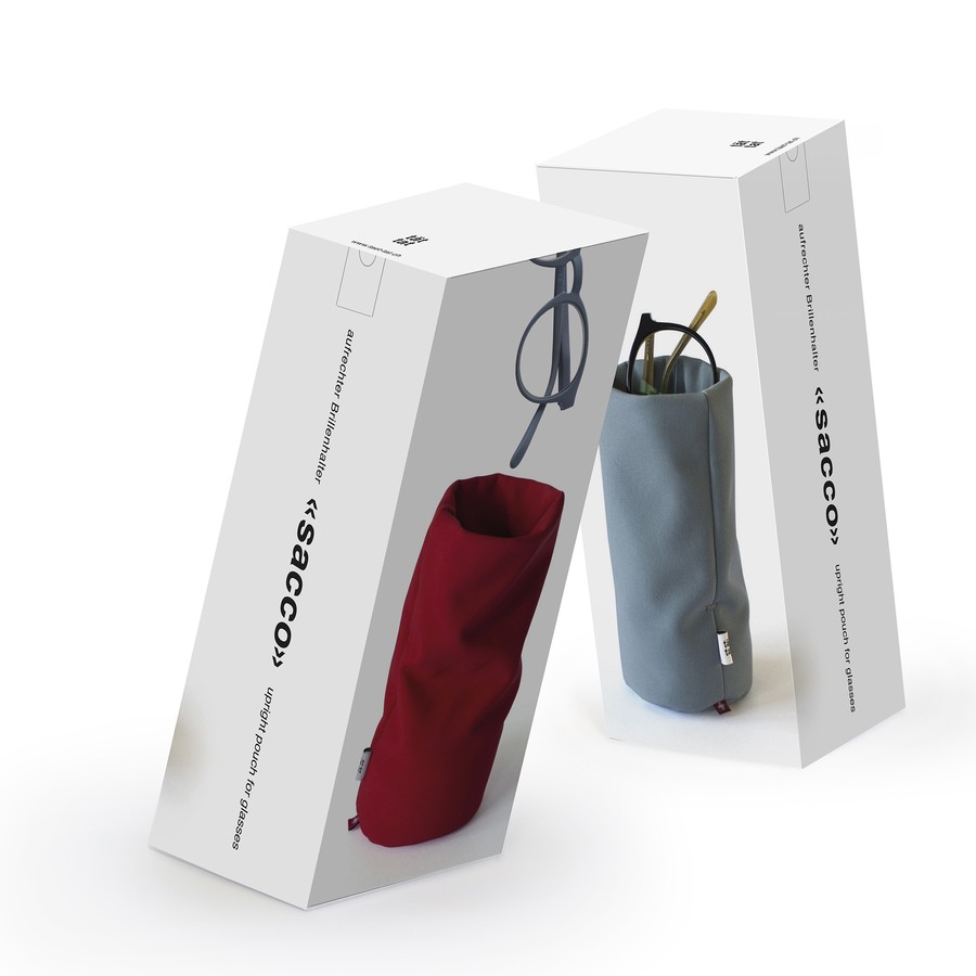 Porte-lunettes vertical Sacco jaune du fabricant suisse tät-tat.