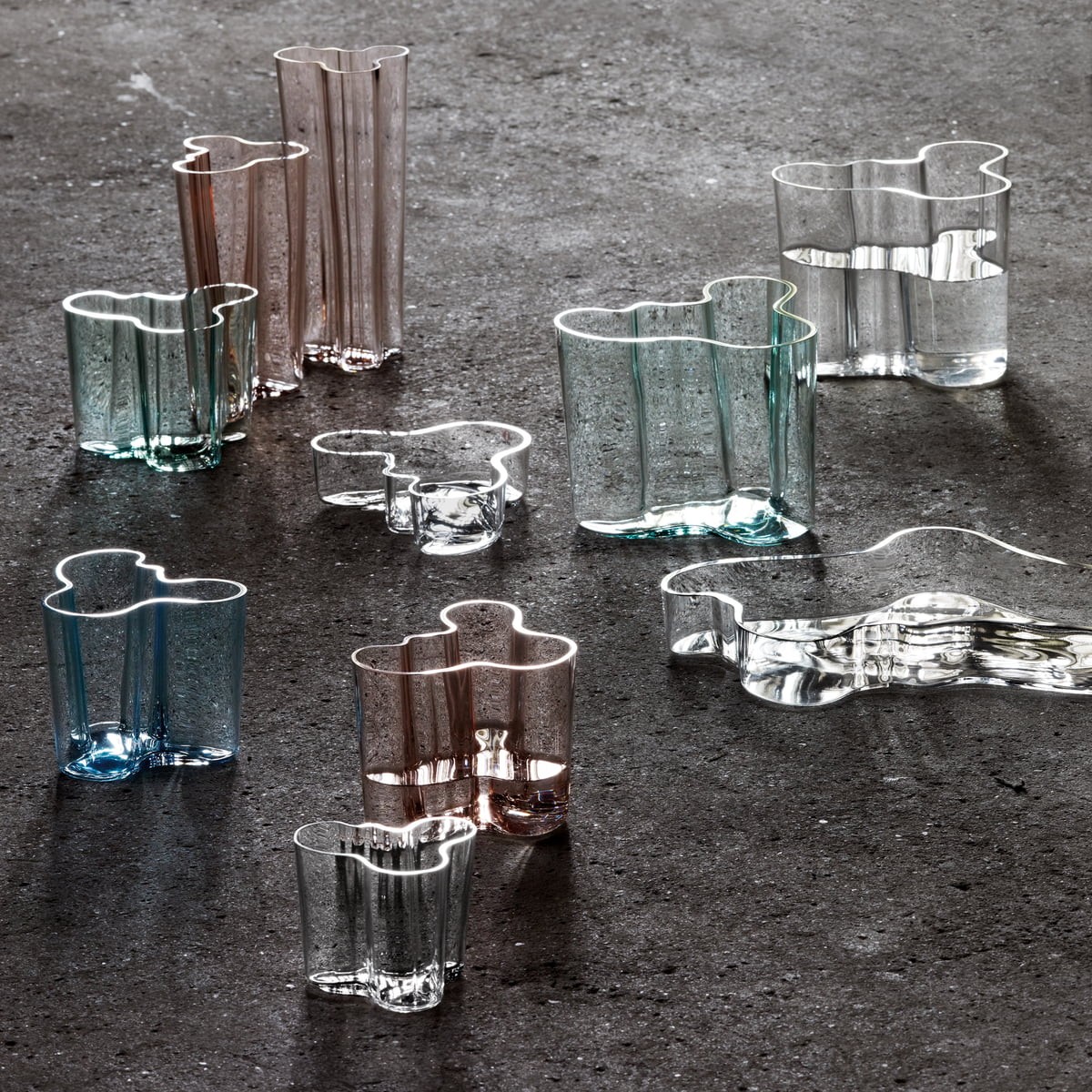 Les vases Alvar Aalto de Iittala sont réalisés en verre soufflé et chaque vase est unique et intemporel.
