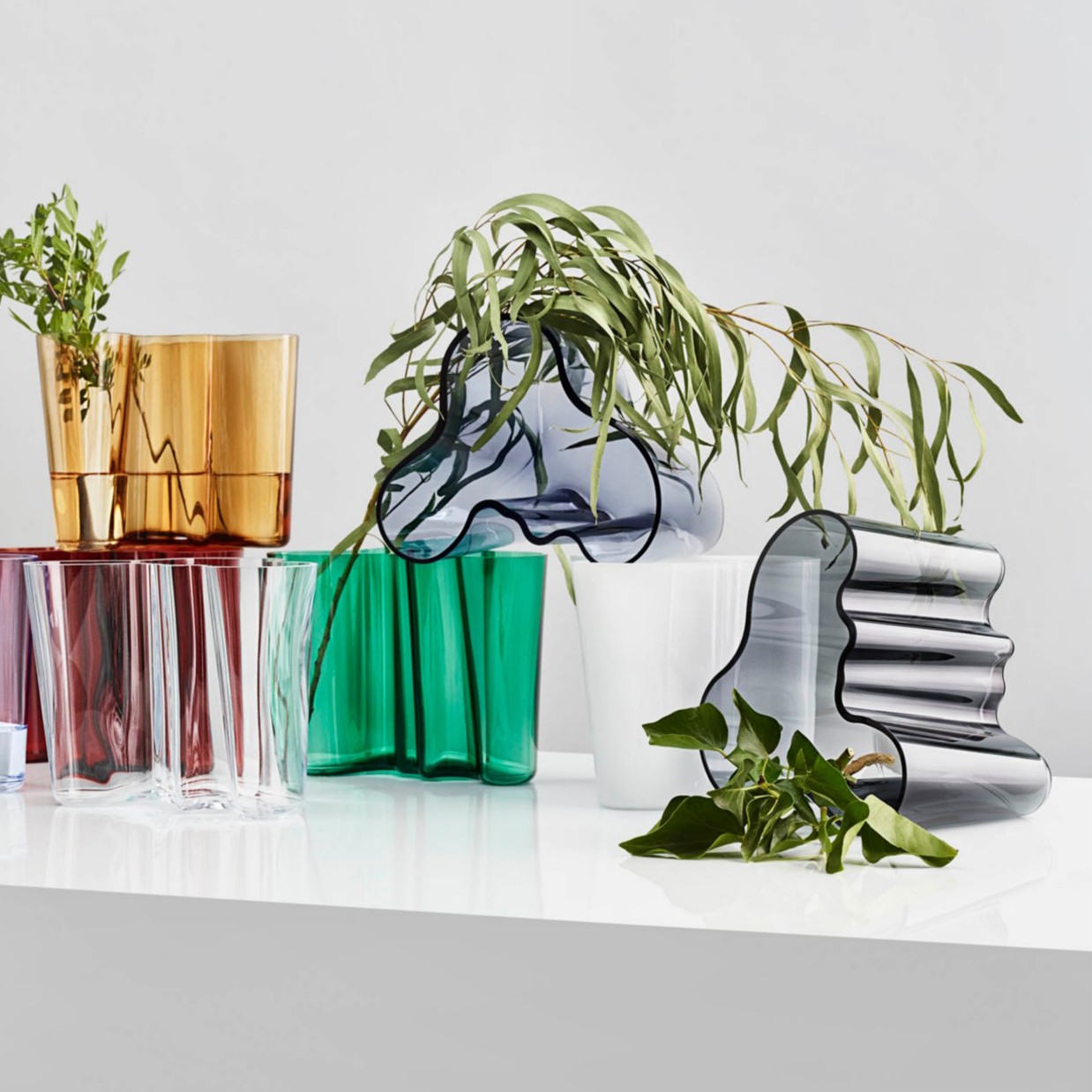 Les vases Alvar Aalto de Iittala sont réalisés en verre soufflé et chaque vase est unique et intemporel.