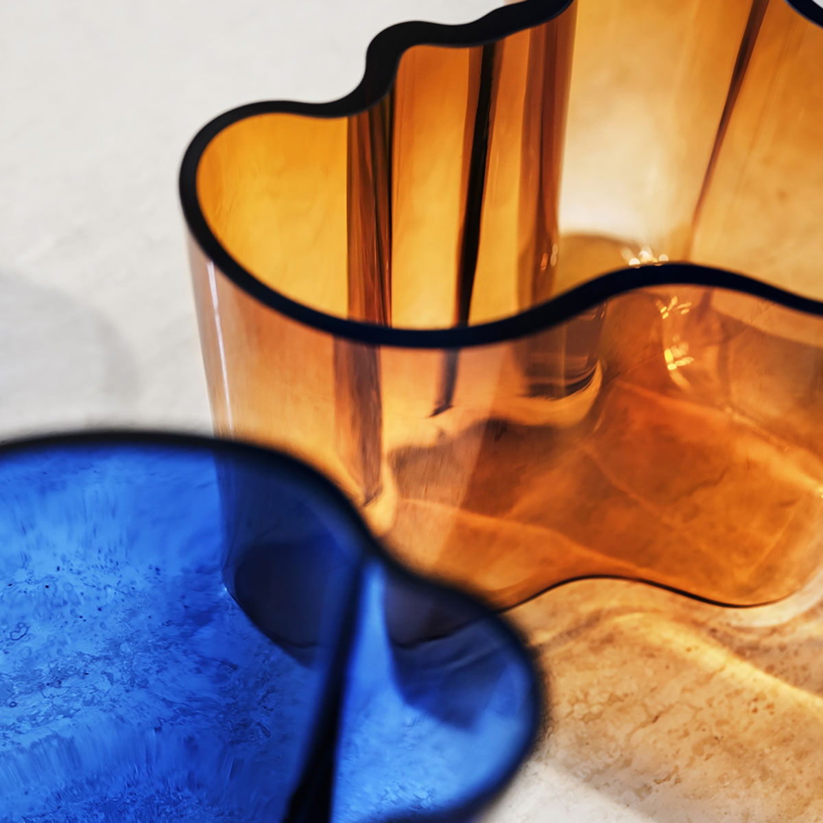 Les vases Alvar Aalto de Iittala sont réalisés en verre soufflé et chaque vase est unique et intemporel.