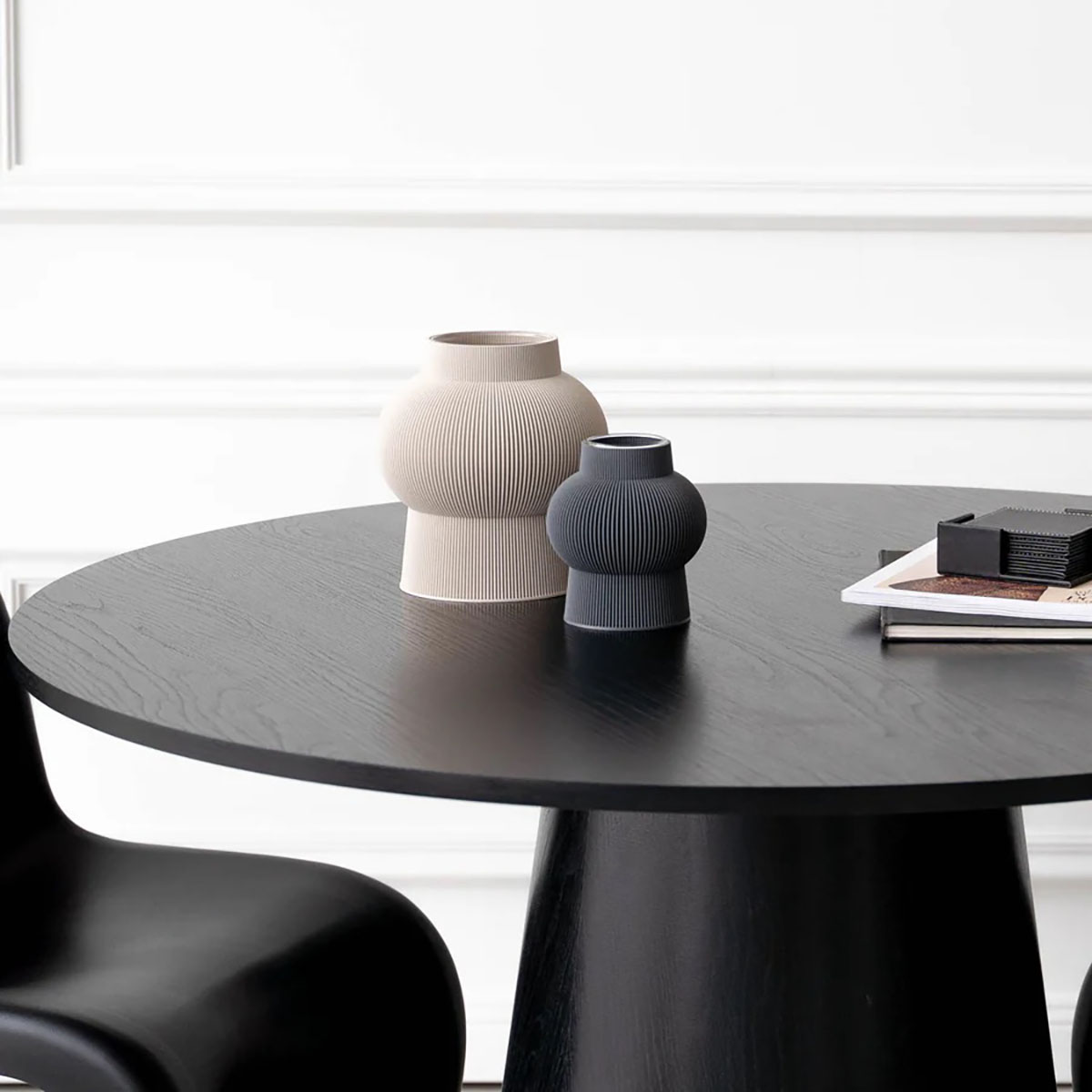 Le vase Rocket séduit par son élégance et sa force expressive. La transition harmonieuse entre sa large base et son ouverture crée un dynamisme sophistiqué qui met parfaitement en valeur toute composition florale. Dans un décor moderne ou un espace minimaliste, il devient un point focal imposant, conférant au lieu une personnalité raffinée et unique.