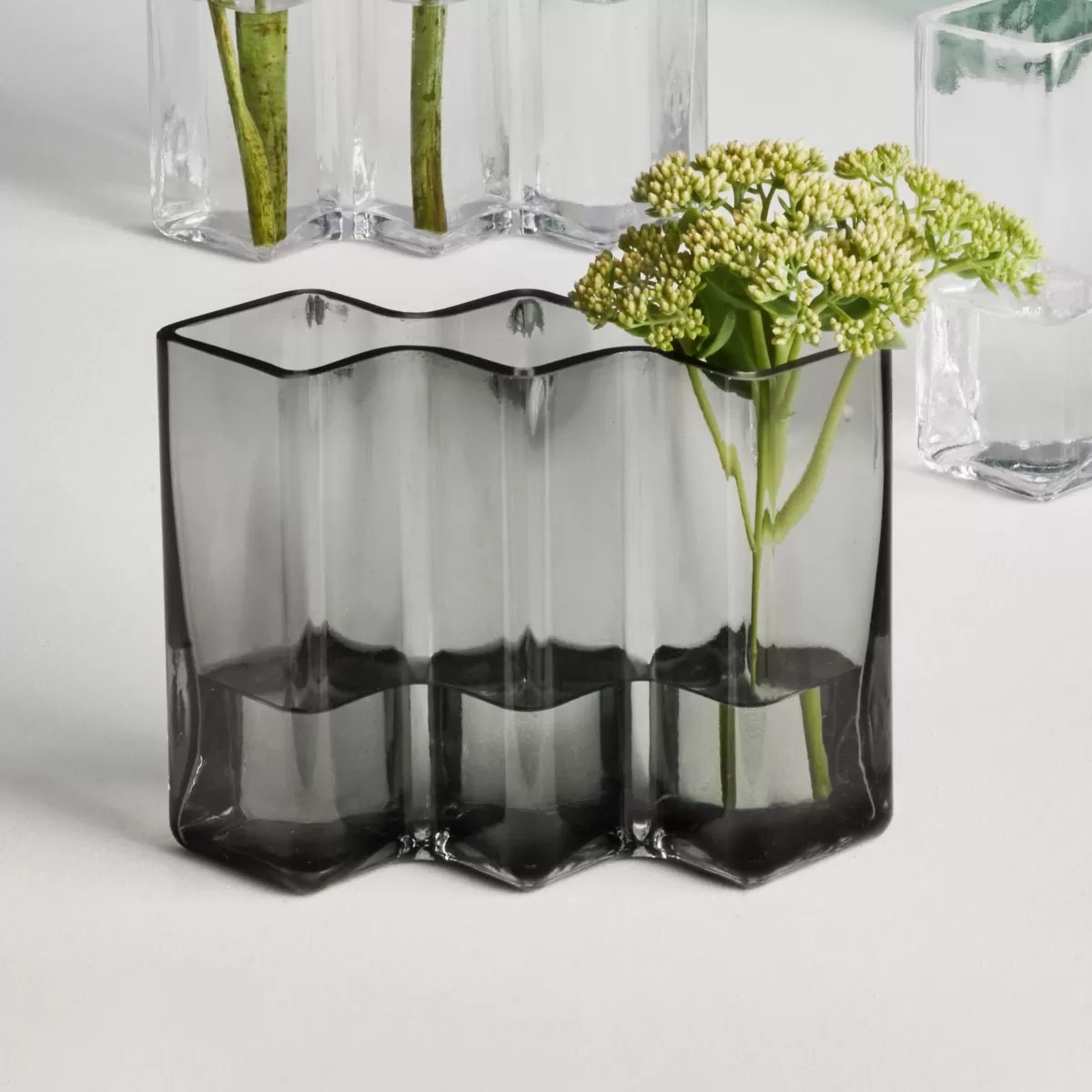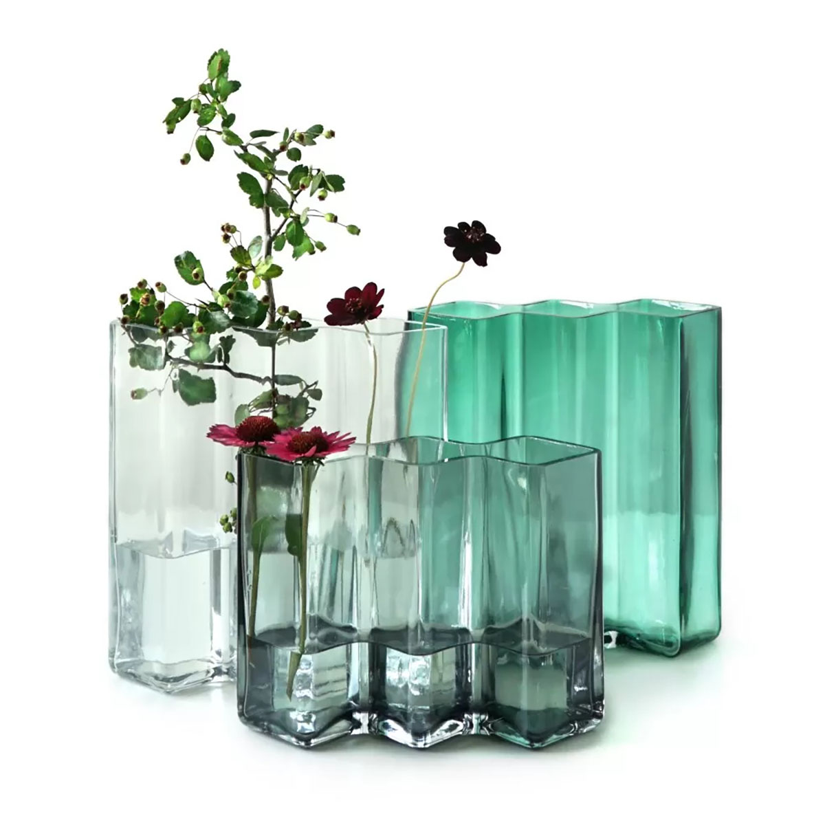 Les vases ROW sont intéressants à combiner entre eux, en jouant avec les couleurs, les hauteurs et le nombre de facettes.