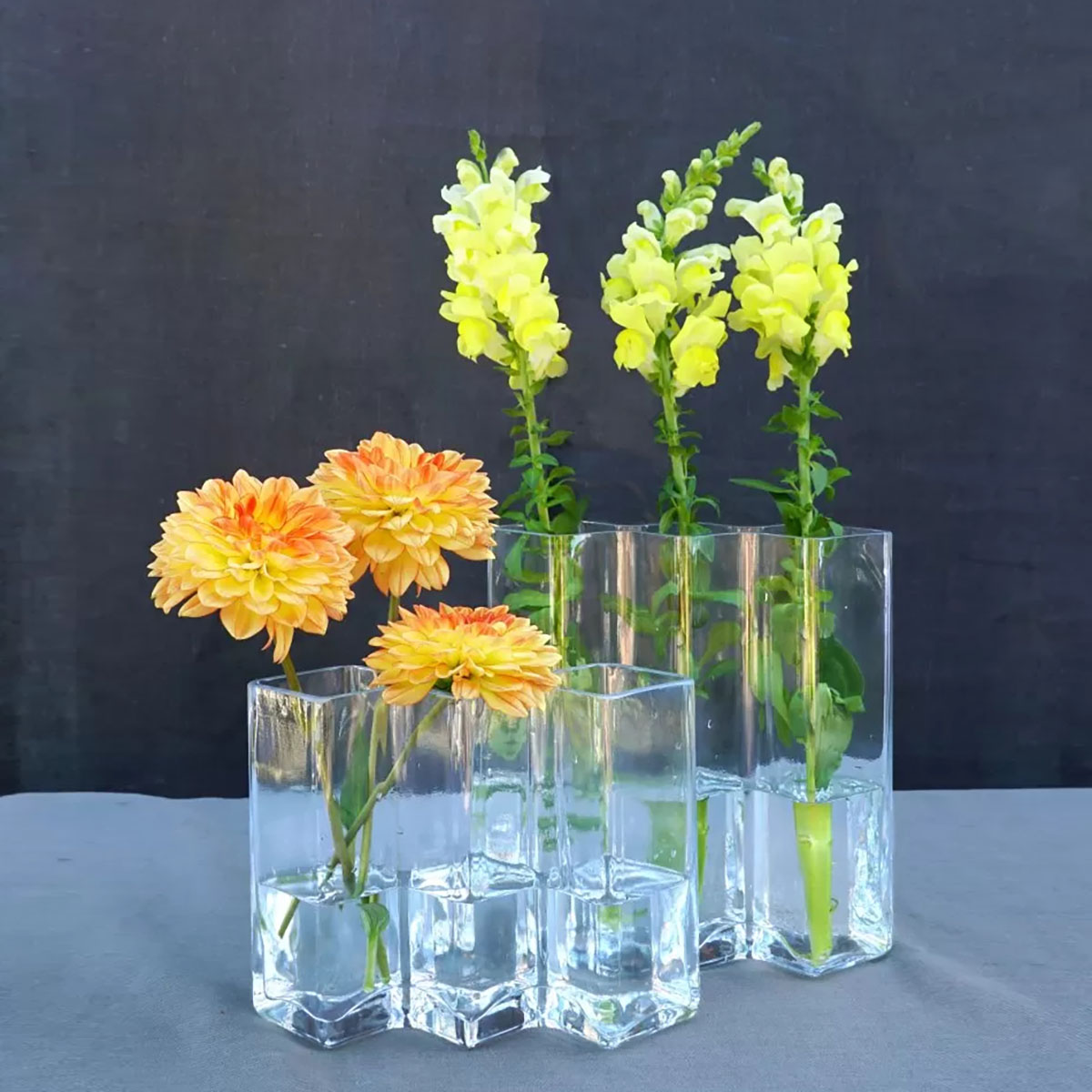 Les vases ROW sont intéressants à combiner entre eux, en jouant avec les couleurs, les hauteurs et le nombre de facettes.