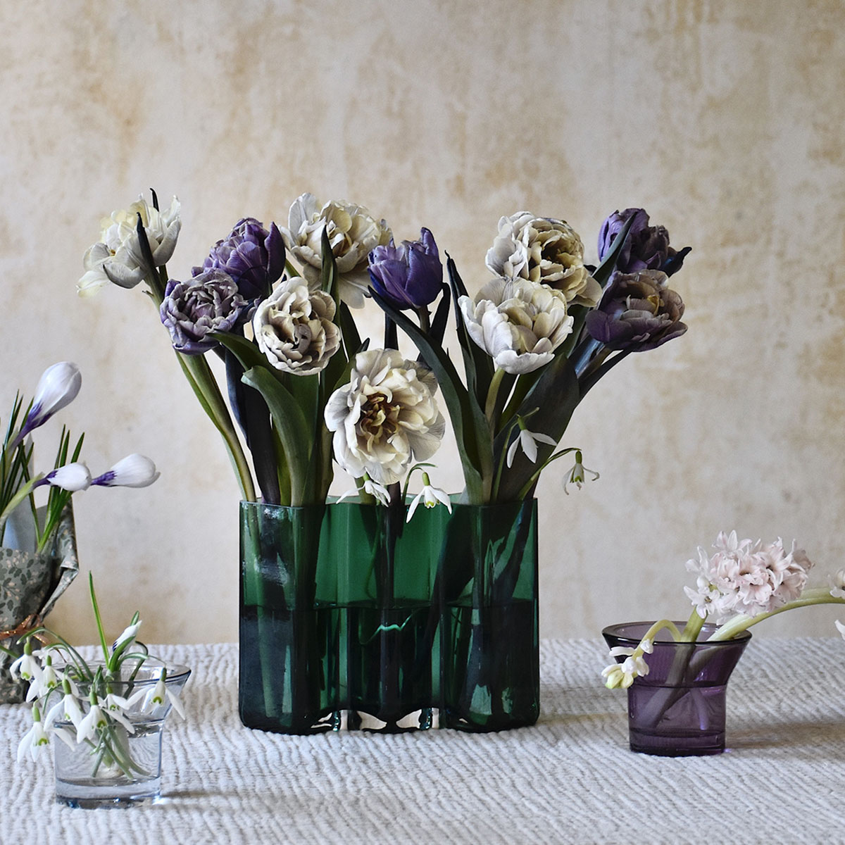 La collection de vases ROW de Born in Sweden est stylée et propose des formes intéressantes. Le design fin est parfait pour une installation au centre de la table tout en laissant de la place pour les assiettes et les verres. Leur forme permet des installations florales inhabituelles.