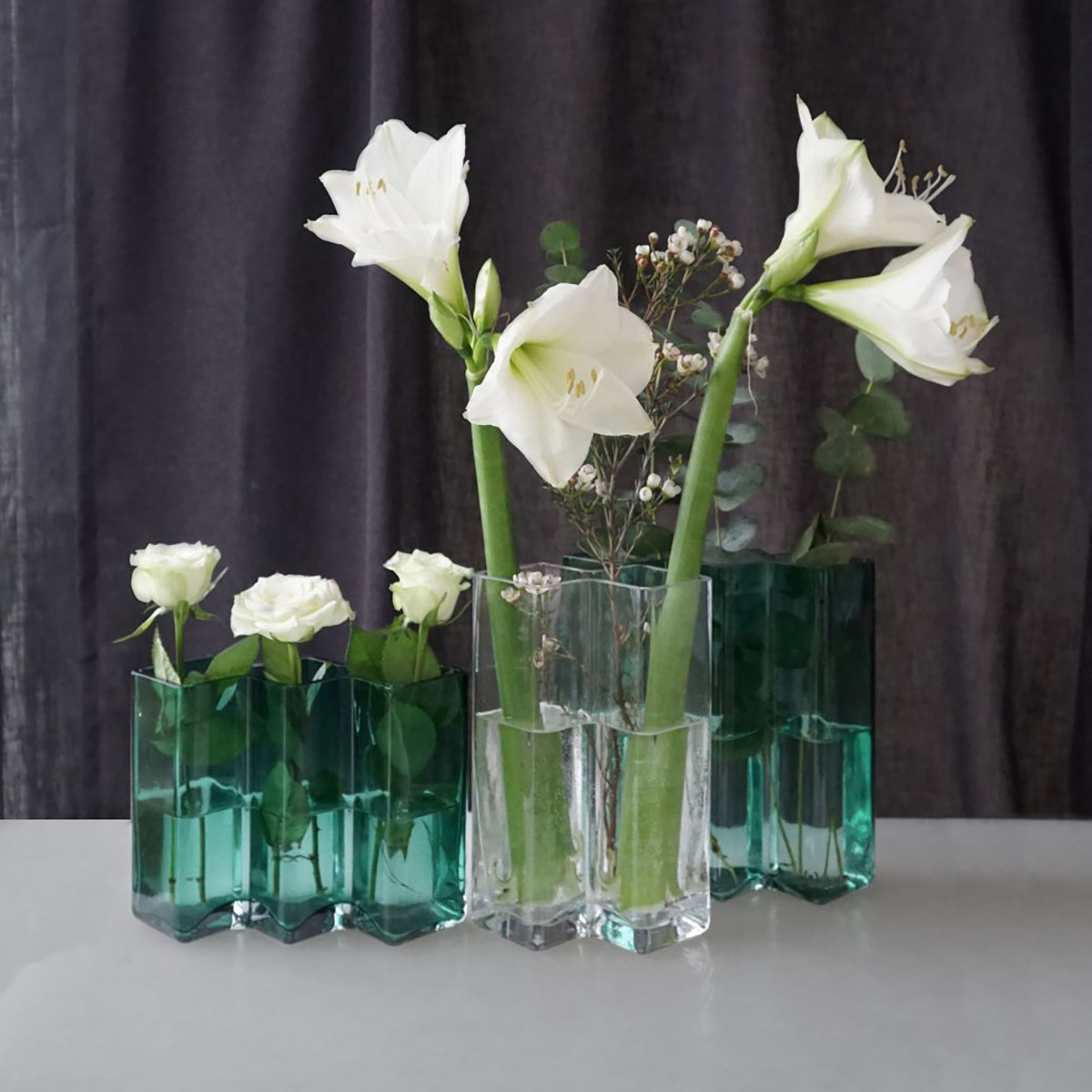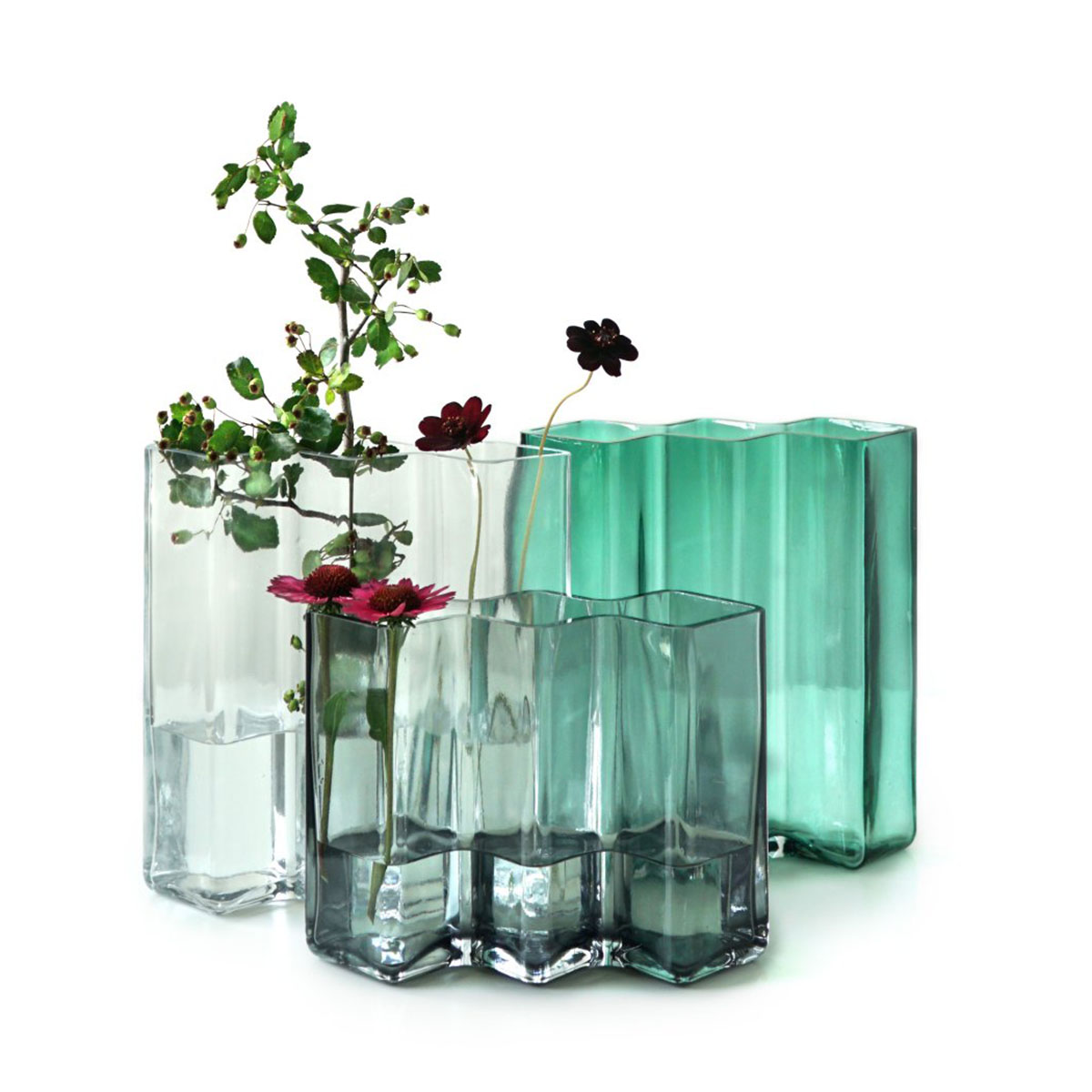Les vases ROW sont intéressants à combiner entre eux, en jouant avec les couleurs, les hauteurs et le nombre de facettes.