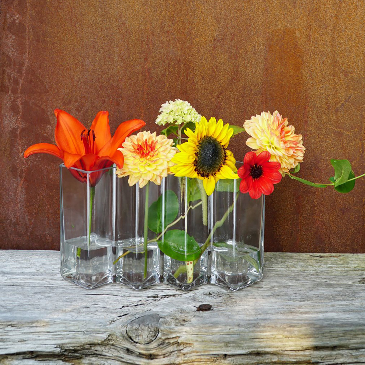 ROW 4 transparent hauteur 16cm est un vase structuré permettant de faire de belles compositions florales.