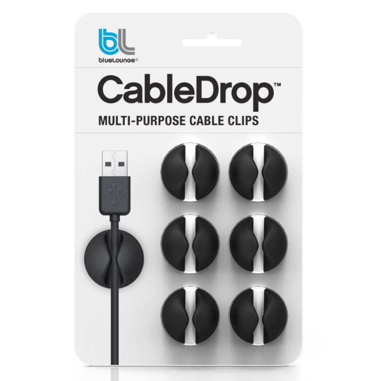 Bluelounge CableDrop noir set de 6 pièces – clip pour câbles.