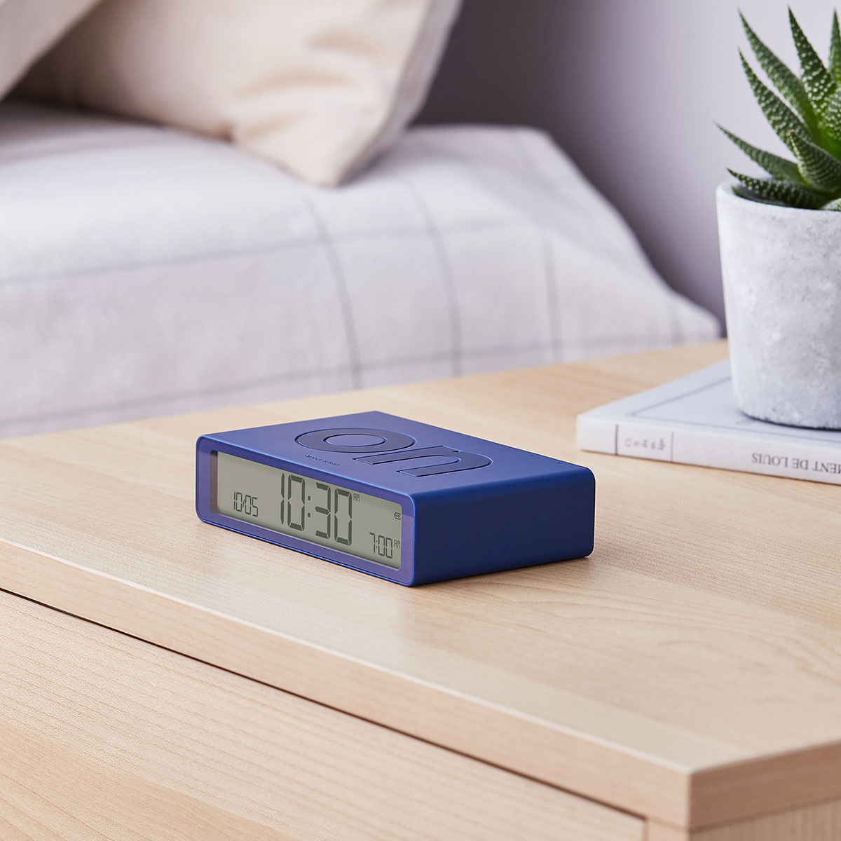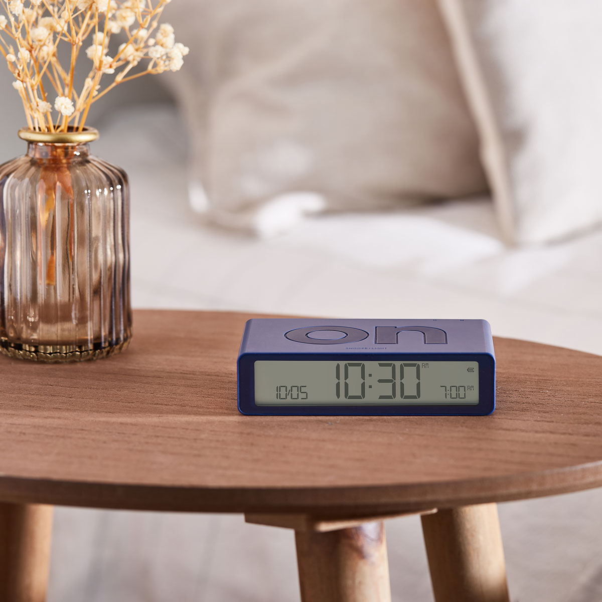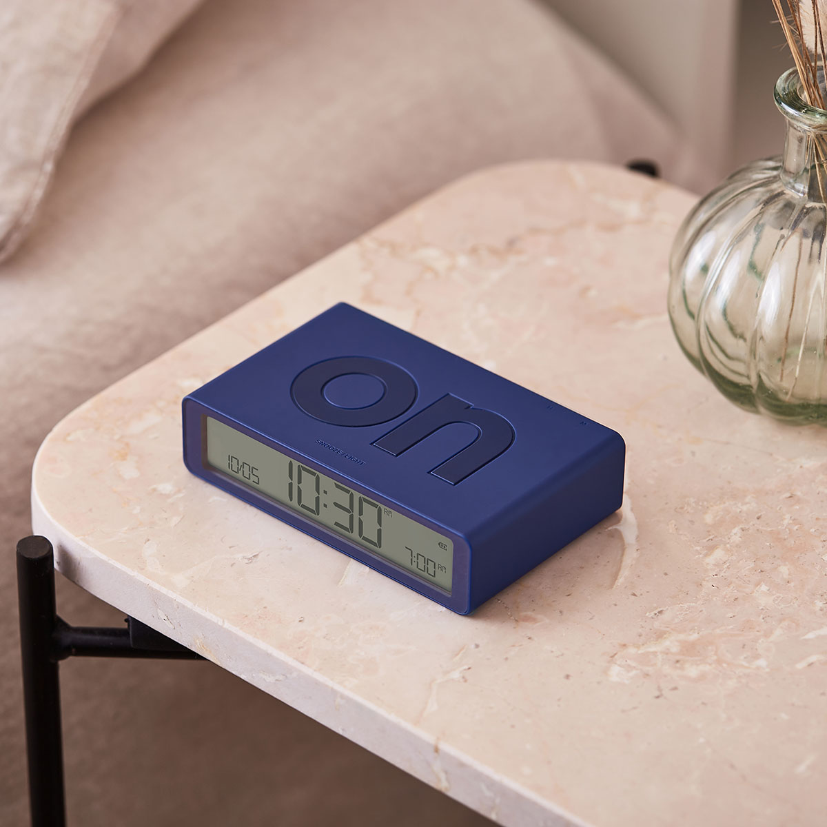 Réveil LCD rechargeable Flip Classic bleu foncé de Lexon.