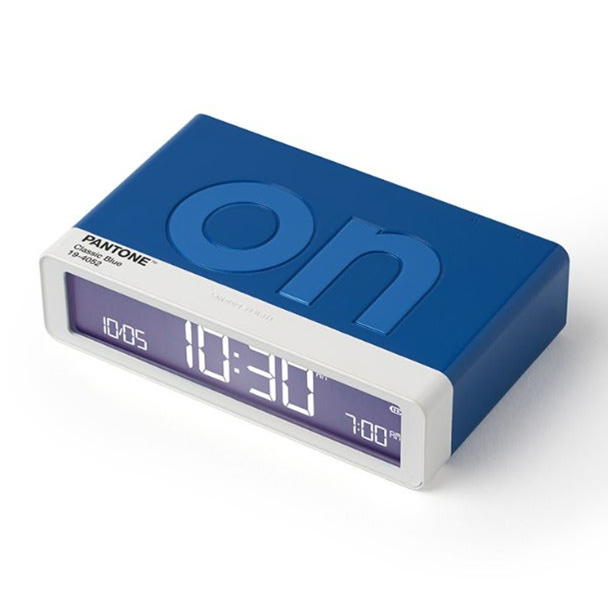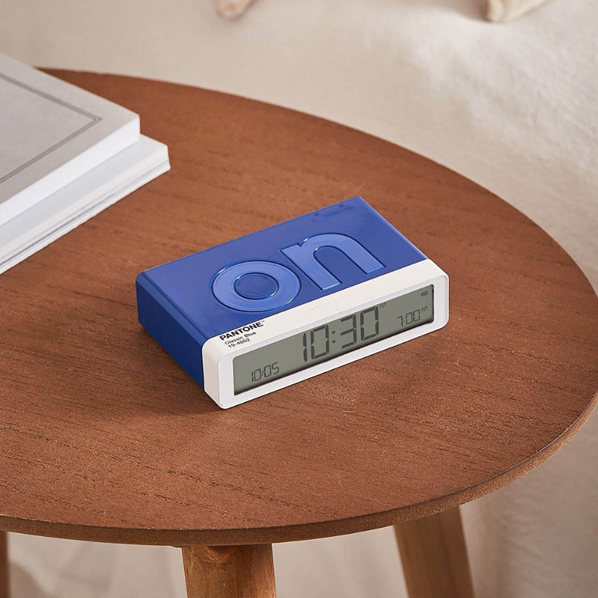 Réveil LCD rechargeable Flip Pantone Bleu de Lexon.