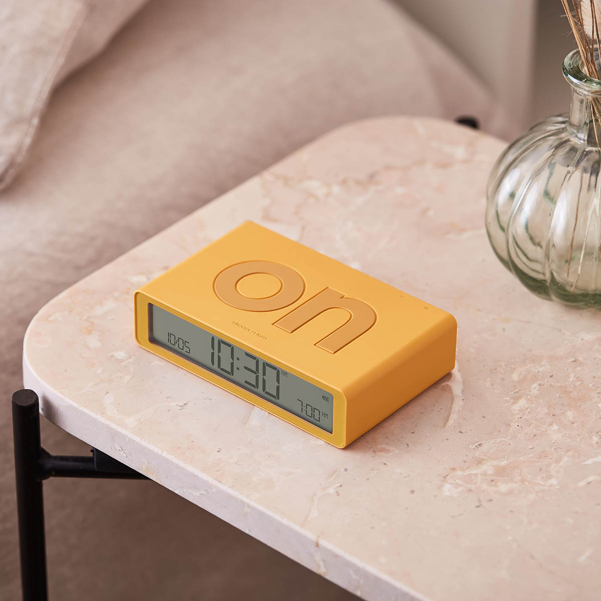 Réveil LCD rechargeable Flip Classic jaune de Lexon.
