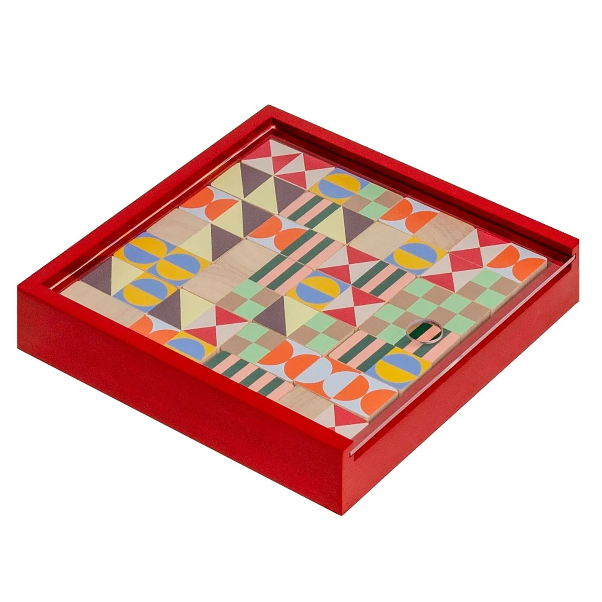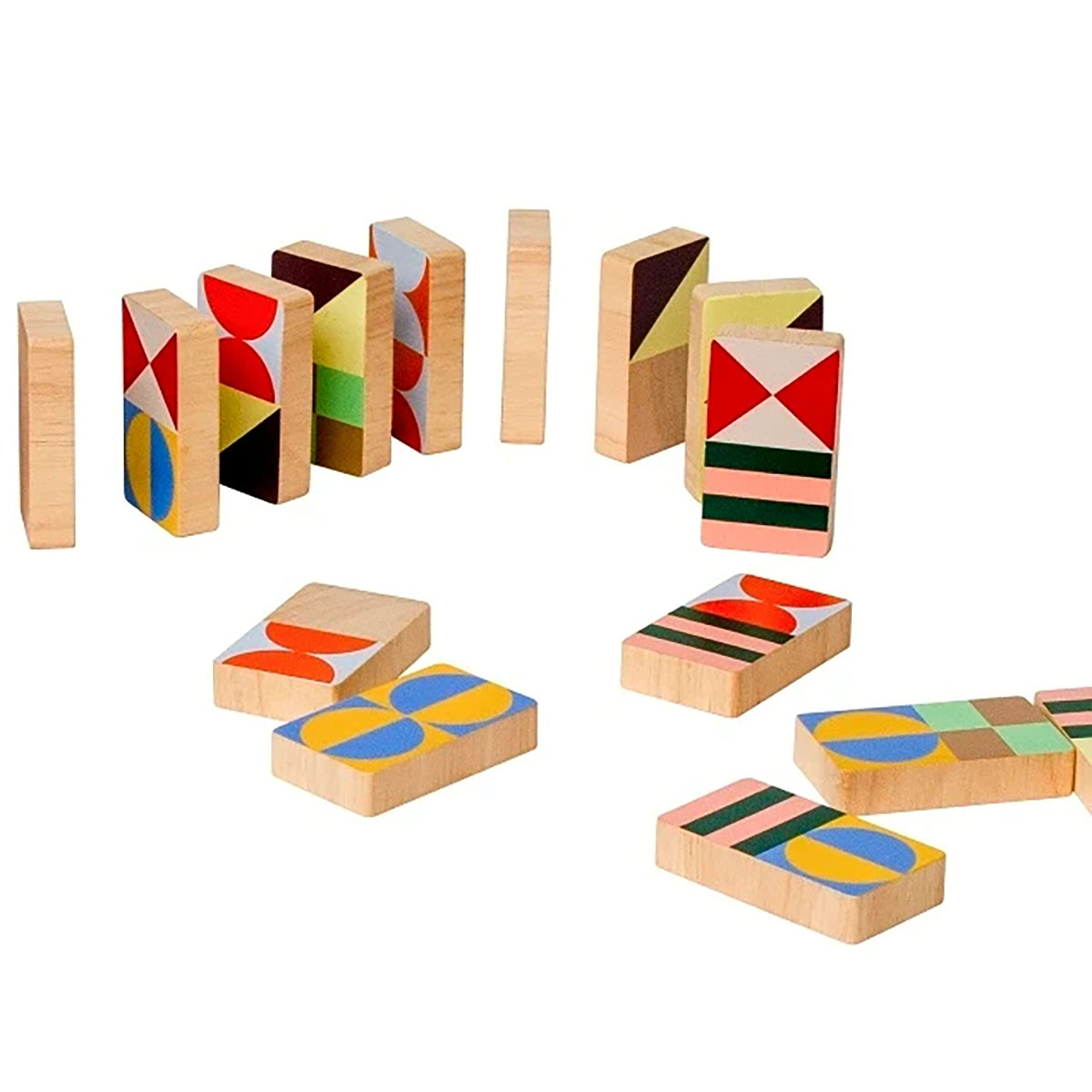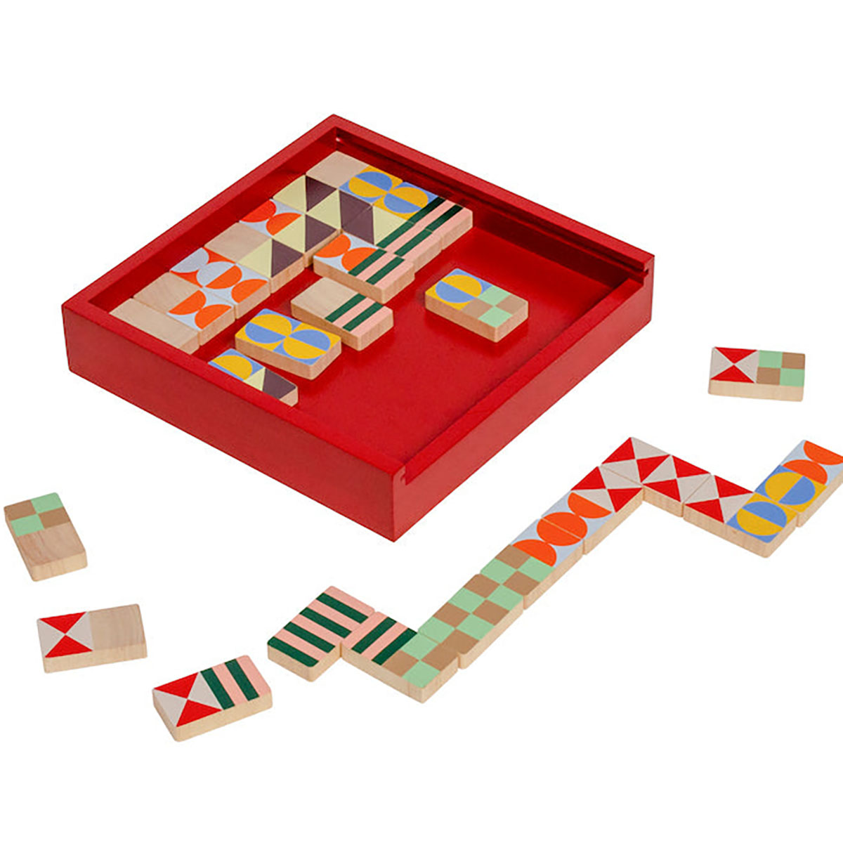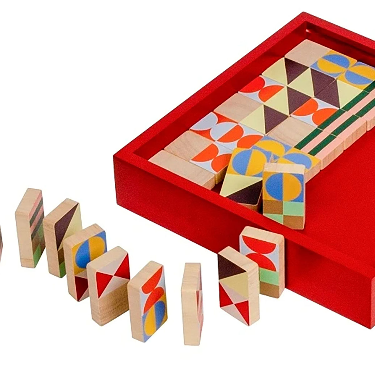 Ce jeu de dominos présente des compositions géométriques inspirées de l’art cubiste et des paires de couleurs très contrastées influencées par le modernisme abstrait. Pour jouer, associez les motifs géométriques colorés pour créer une formation de dominos. Le résultat est une magnifique mosaïque de formes et de couleurs vives. Les dominos à motifs géométriques encouragent la dextérité et sont amusants pour les jeunes et les moins jeunes.