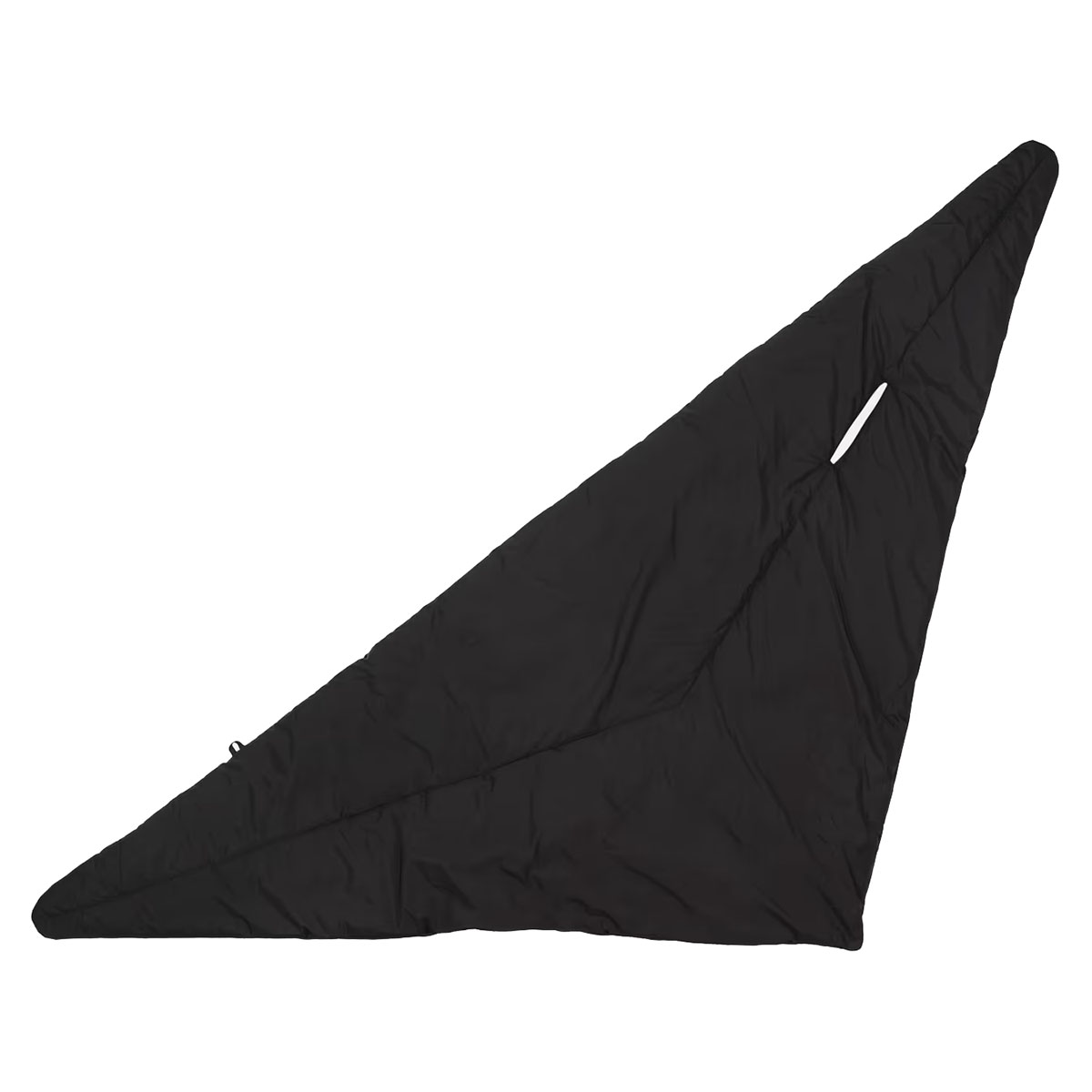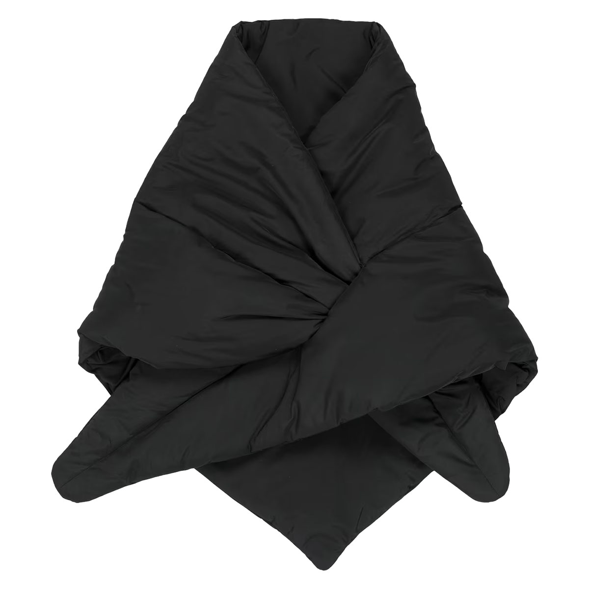 L’écharpe est fixée en tirant une extrémité à travers la fente de la couture centrale.