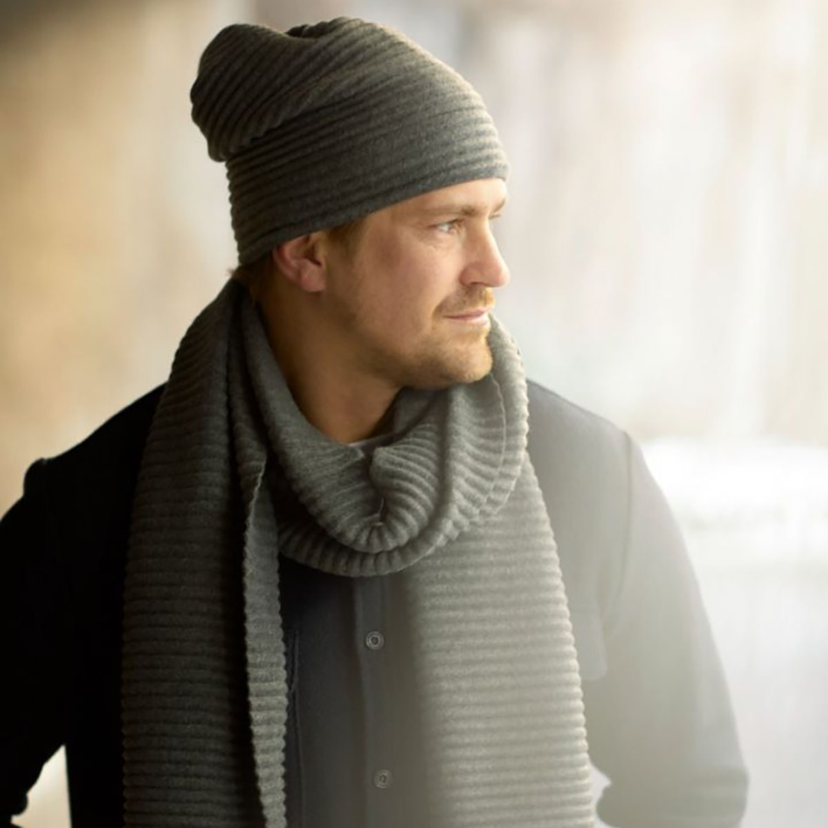 Set écharpe + bonnet Pleece Long Scarf + Beanie Dark Grey de Design House Stockholm.